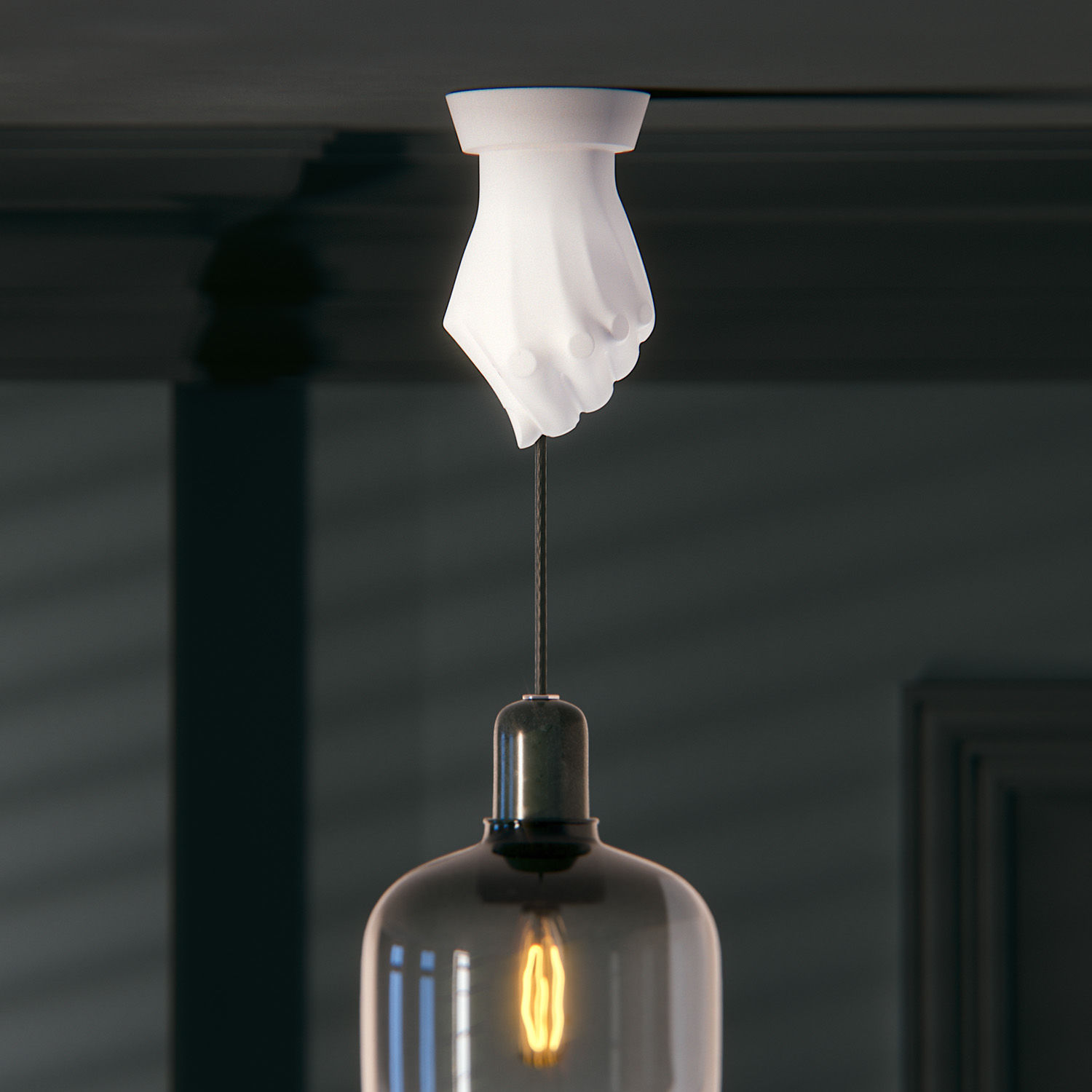 Underneath the stylish cover, smart design abounds: Mounted in place by only three screws, your lamp safely hangs from the ceiling up to 2kg in weight thanks to the magic of cord grip.