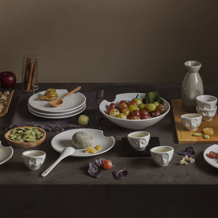 Suitable as a side plate for butter and bread for a festive look. But it also perfectly stages Asian side dishes. And anyone who has been looking for a saucer for our mug with a handle and wants to avoid coffee stains now has the perfect companion for our 350 ml mugs.