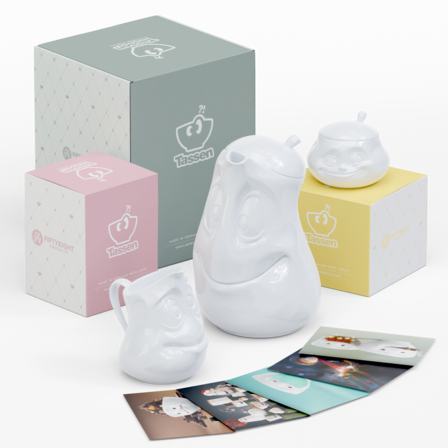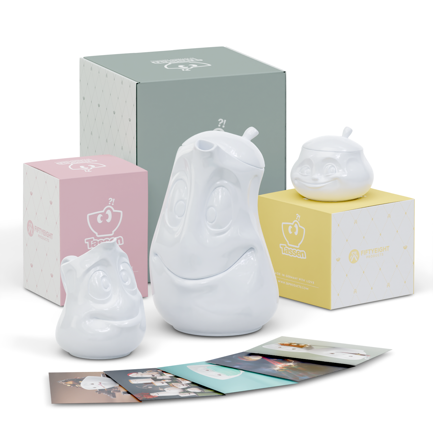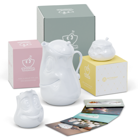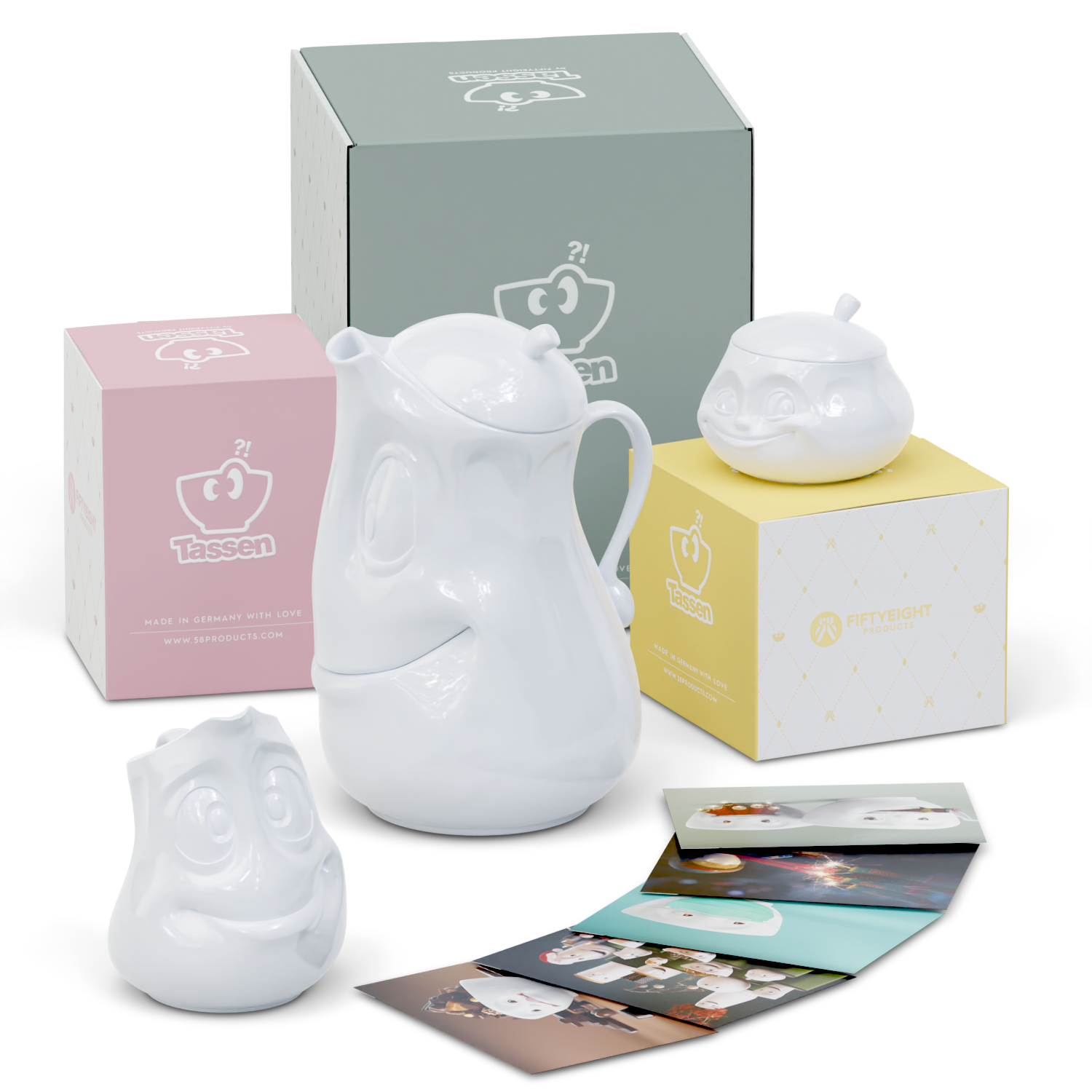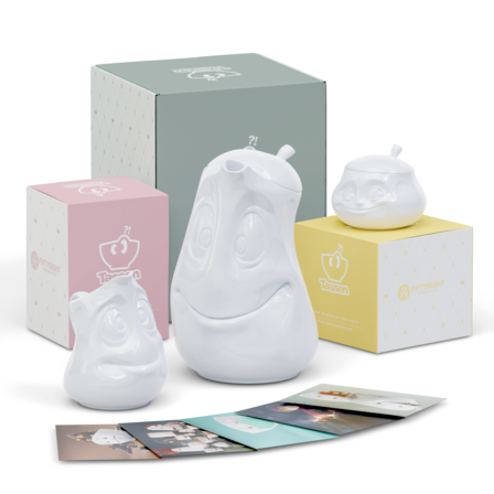 Our Pot GOOD MOOD, the little jug JOLLY and our sugar bowl SWEET in a wonderful 3-piece combo.