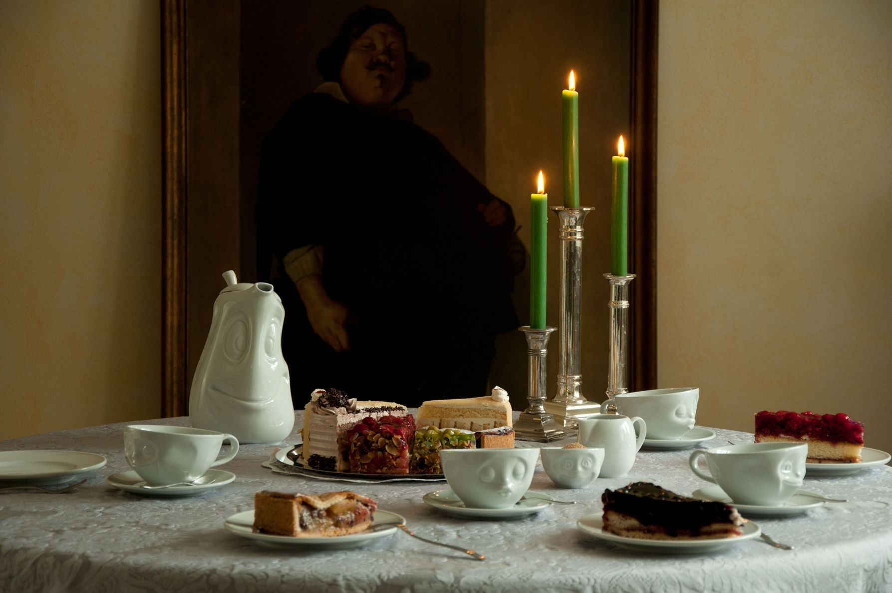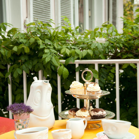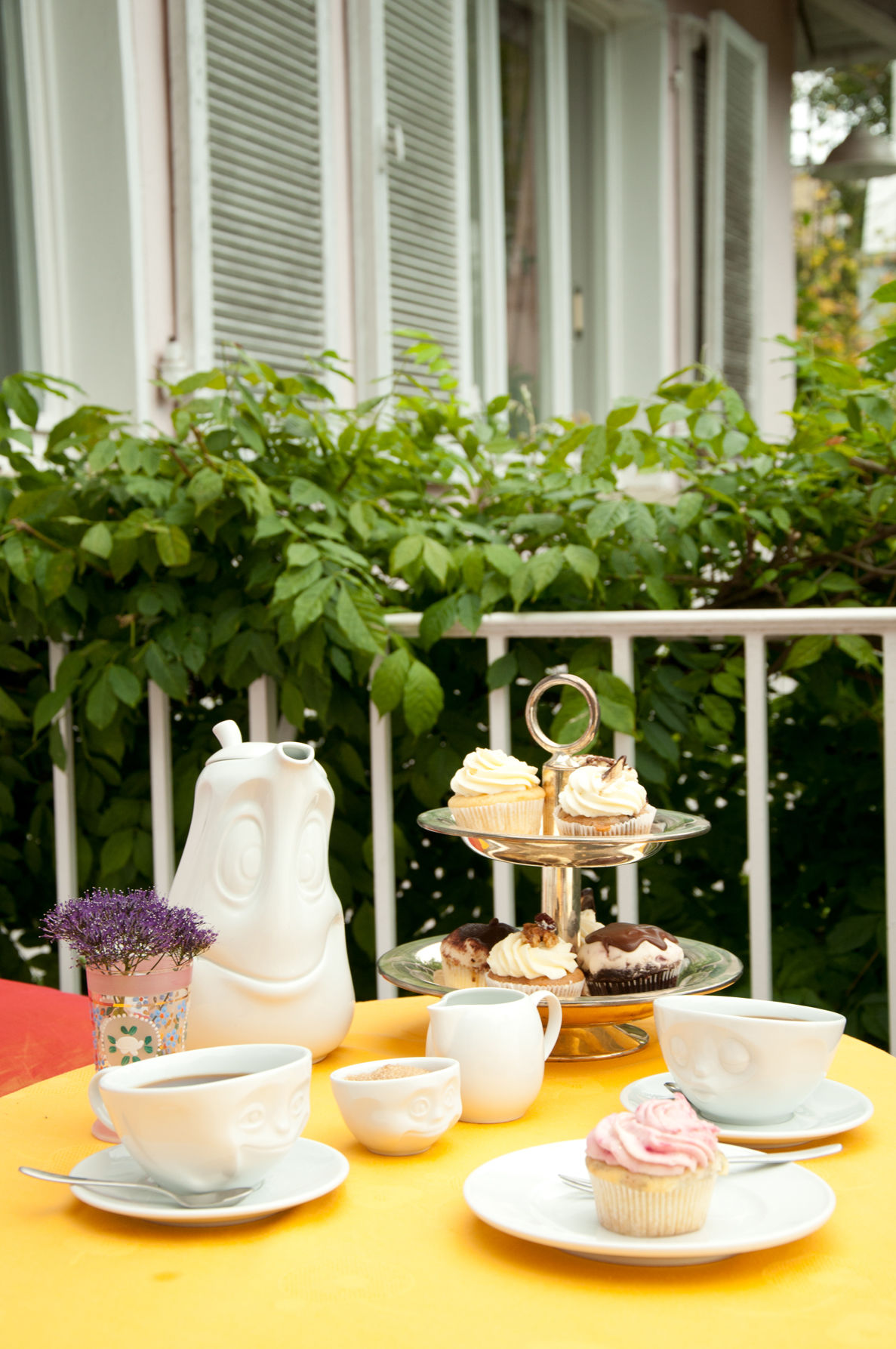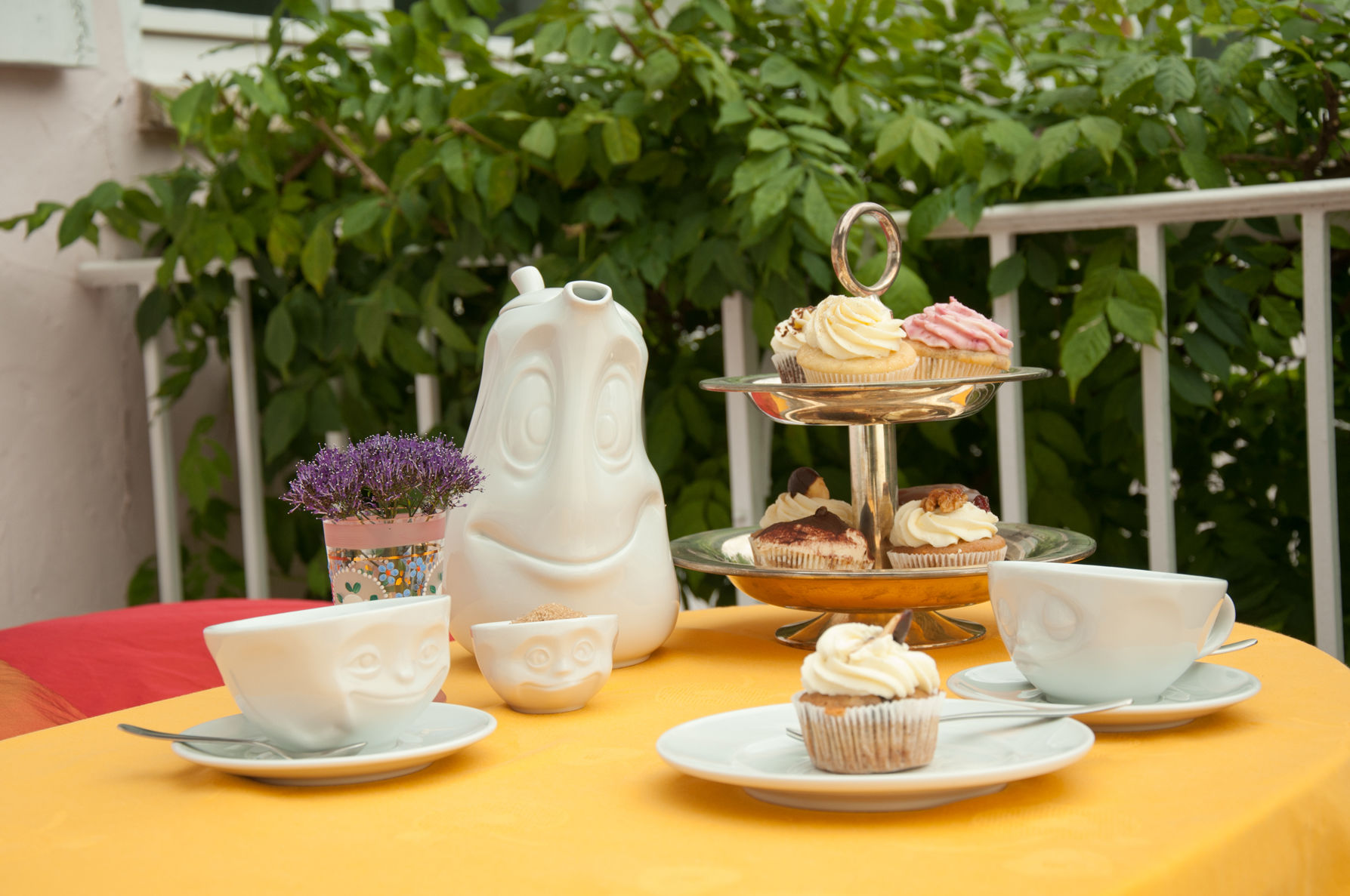 OH PLEASE!, SNOOZY and TASTY (200 ml) and our pot GOOD MOOD (1200 ml), little jug JOLLY, sugar bowl SWEET + 5 postcards