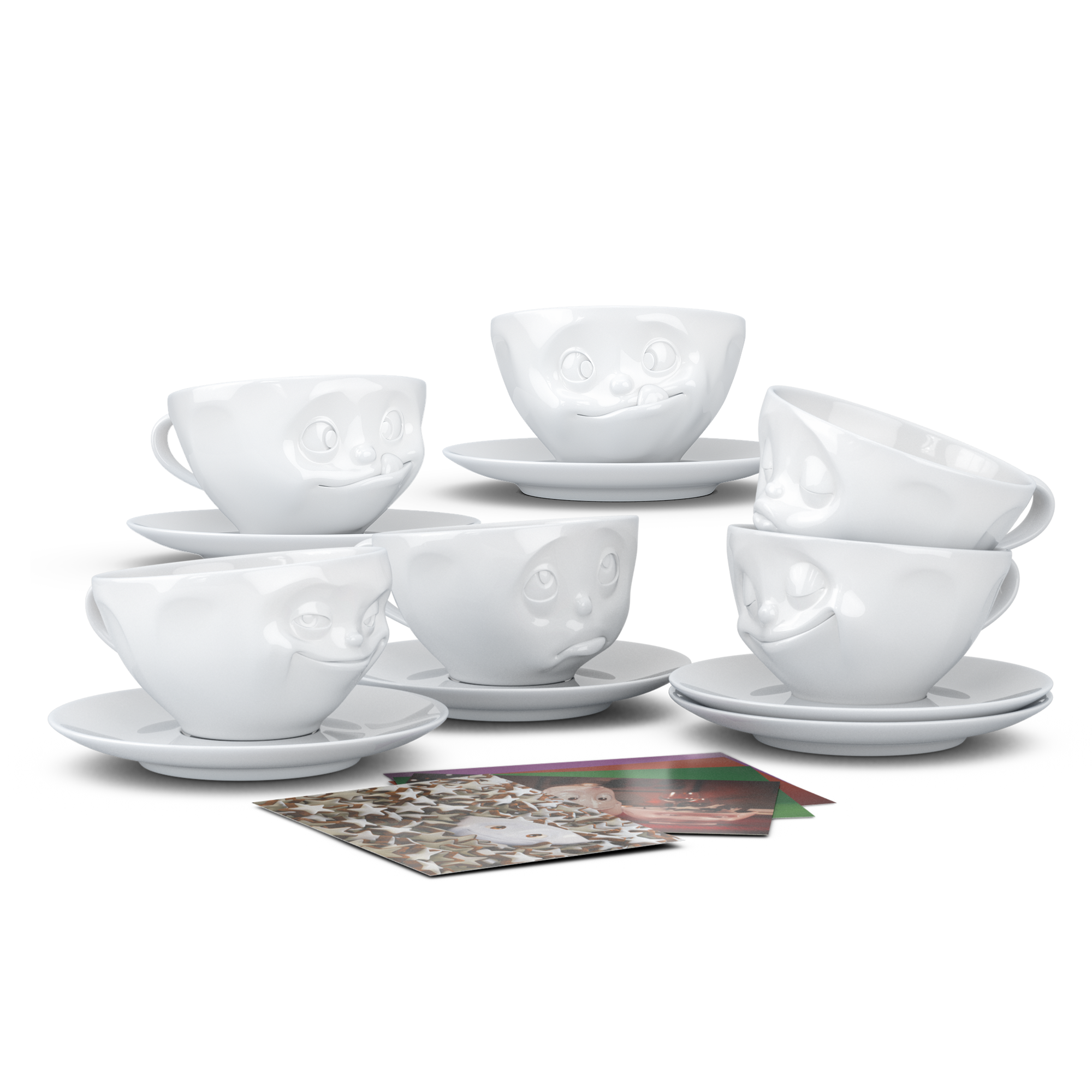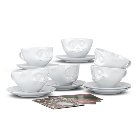 In our MEGA Coffee combo set you get all of our funny coffee or tea cup faces, GRINNING, KISSING, HAPPY,