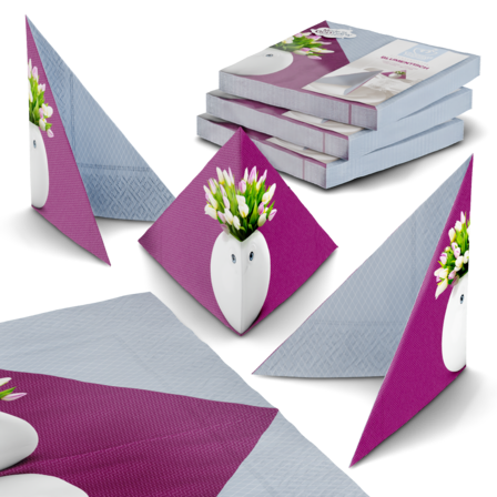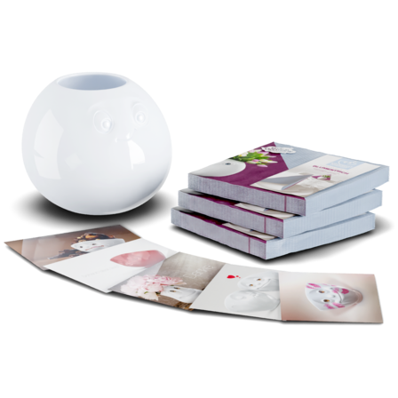 Our Vase AMUSED in white and 3x lunch napkins BOUQUET GOURMET + 5 postcards