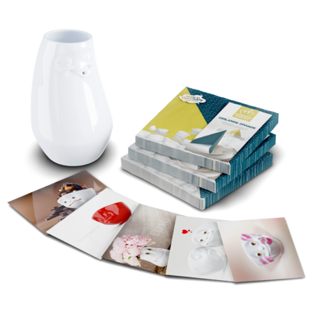 Our Vase LAID-BACK in white and 3x lunch napkins AFTERNOON FESTOON + 5 postcards