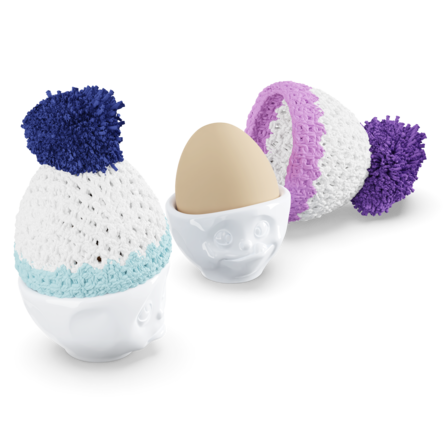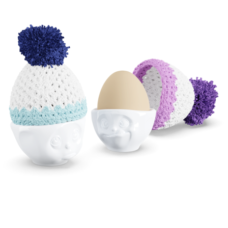 The egg cup hats are hand-made from "myboshi"-wool.