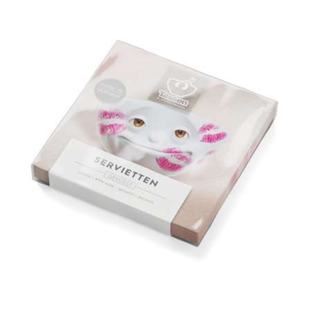 The Design of the 500 ml bowl Movie Edition KISSED and the breakfast Board in the same design won your hearts already, now it's also available as paper napkins.