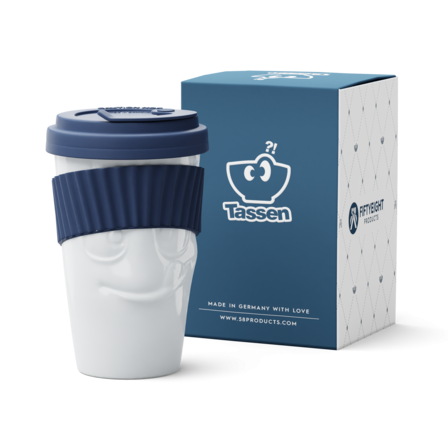 The Mug to Go with a TASTY face does not feature a handle, but it features a colourful sleeve for protecting the fingers from hot liquids. And as always, the mug itself is crafted from premium hard porcelain.