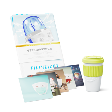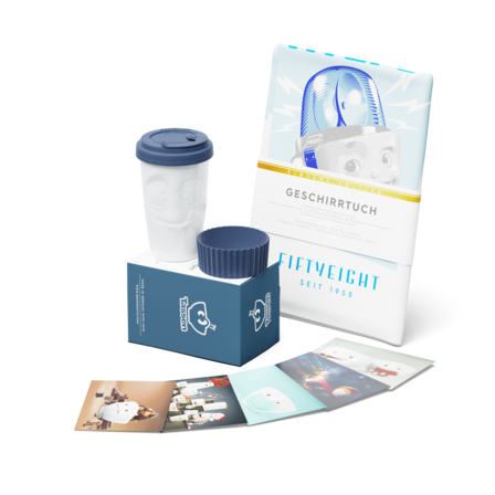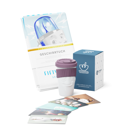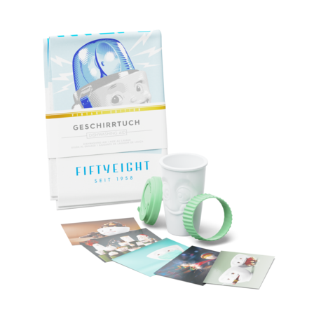 Our Santa Claus Special Set - Go Santa Go - consists both of our Dish towels DISHWASHING AID and TASTY and one Mug To Go TASTY, freely selectable from the colors Wineberry, Mint, Navy or Lime + 5 postcards*.