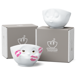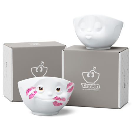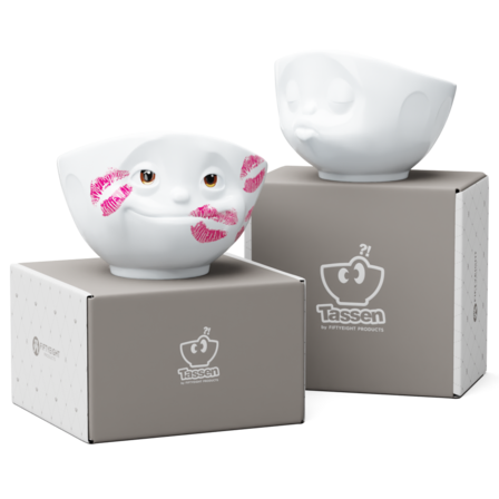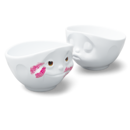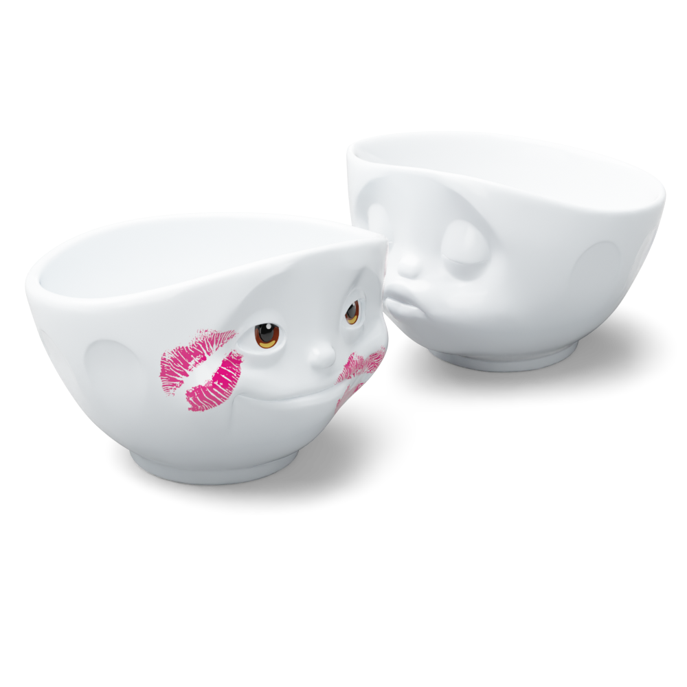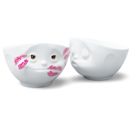 Our Lovebirds set contains the bowl KISSING in white & bowl KISSED Movie Edition (500 ml)  + 5 postcards