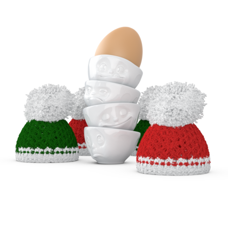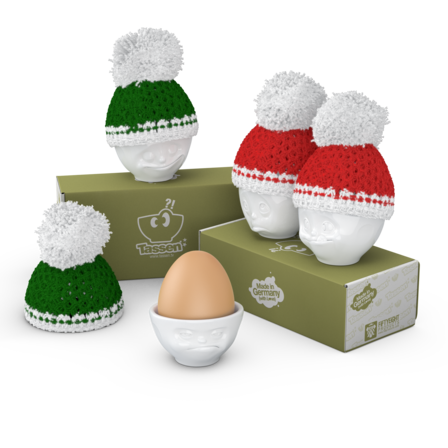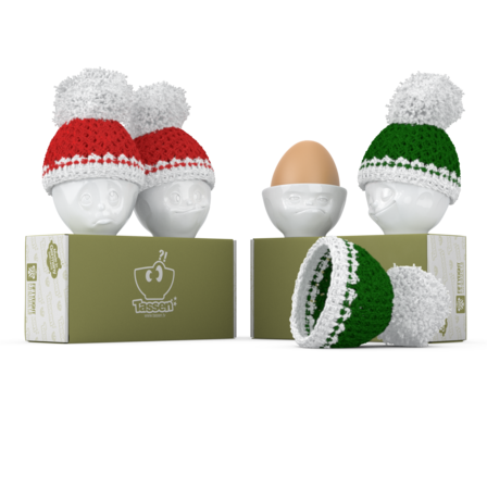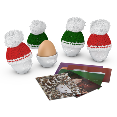 The set contains 4 Egg cups (Set no. 2 + no. 3) , 2 x red Egg cup hats and 2 x green Egg cup hats plus 5 postcards*