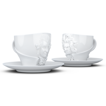 As one of their major achievements, Mozarts and Beethoven are credited with advancing the symphony into a dramatic, high-brow art form in its own right. Both are considered among the greatest composers to ever walk the face of the earth. And although we have never met the two brilliant artists in person, we must say that they appear in perfect harmony in a two-piece set of TALENT Cups featuring their respective likeness.