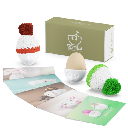 Here’s an Easter surprise at a special price: Our Egg Cups & Knit Hats pairs up our Egg Cups KISSING & DREAMY with a Knit Hat in red/coral and apple/mint, plus five TASSEN Postcards.