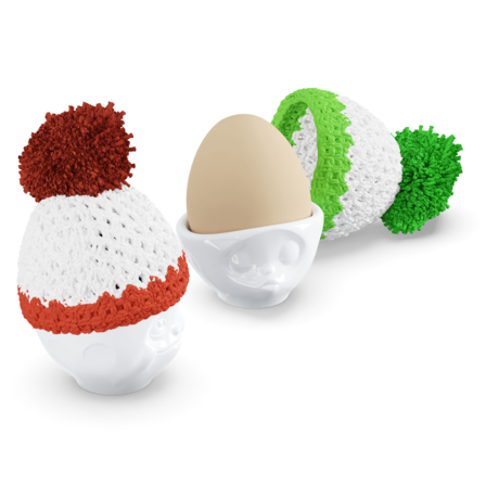 The matching Knit Hats keep these Egg Cups looking fresh and also keep breakfast eggs warm at the table. And what’s more “eggciting”: the cups are perfect mini containers for all kinds of table-side knick-knacks like spices, Fleur de SEL, herbs, wasabi, one scoop of ice cream etc.