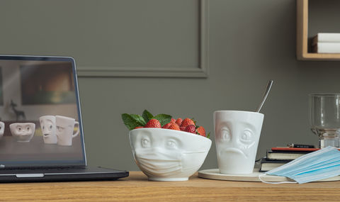 Dealing with the crisis also included an intense discussion on how we could make a contribution towards keeping these times in our collective memory. Answer: A TASSEN bowl with a face mask!