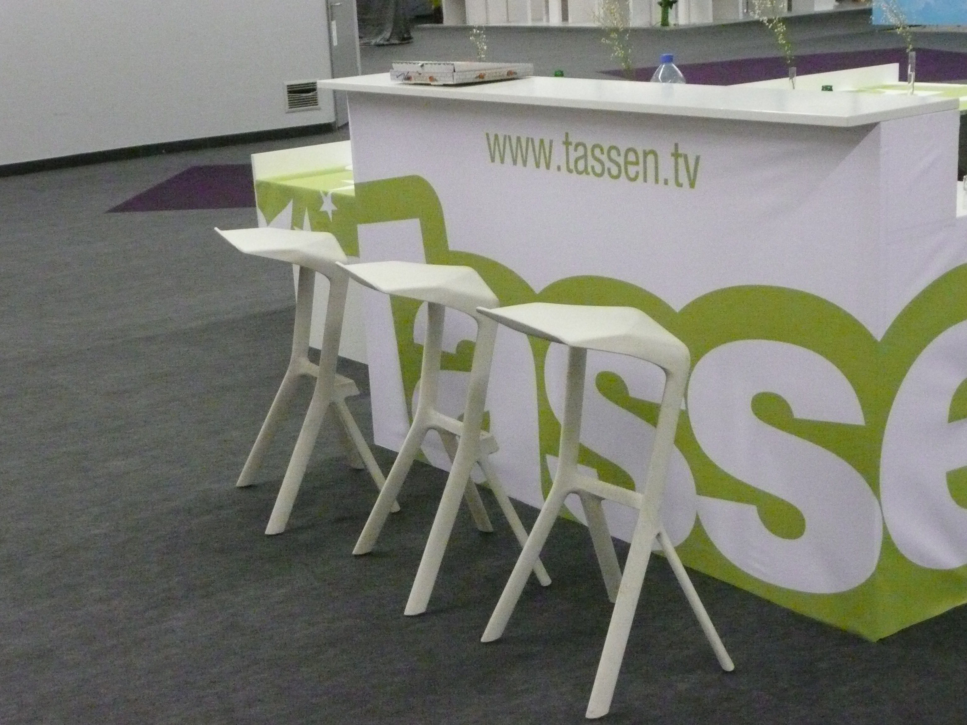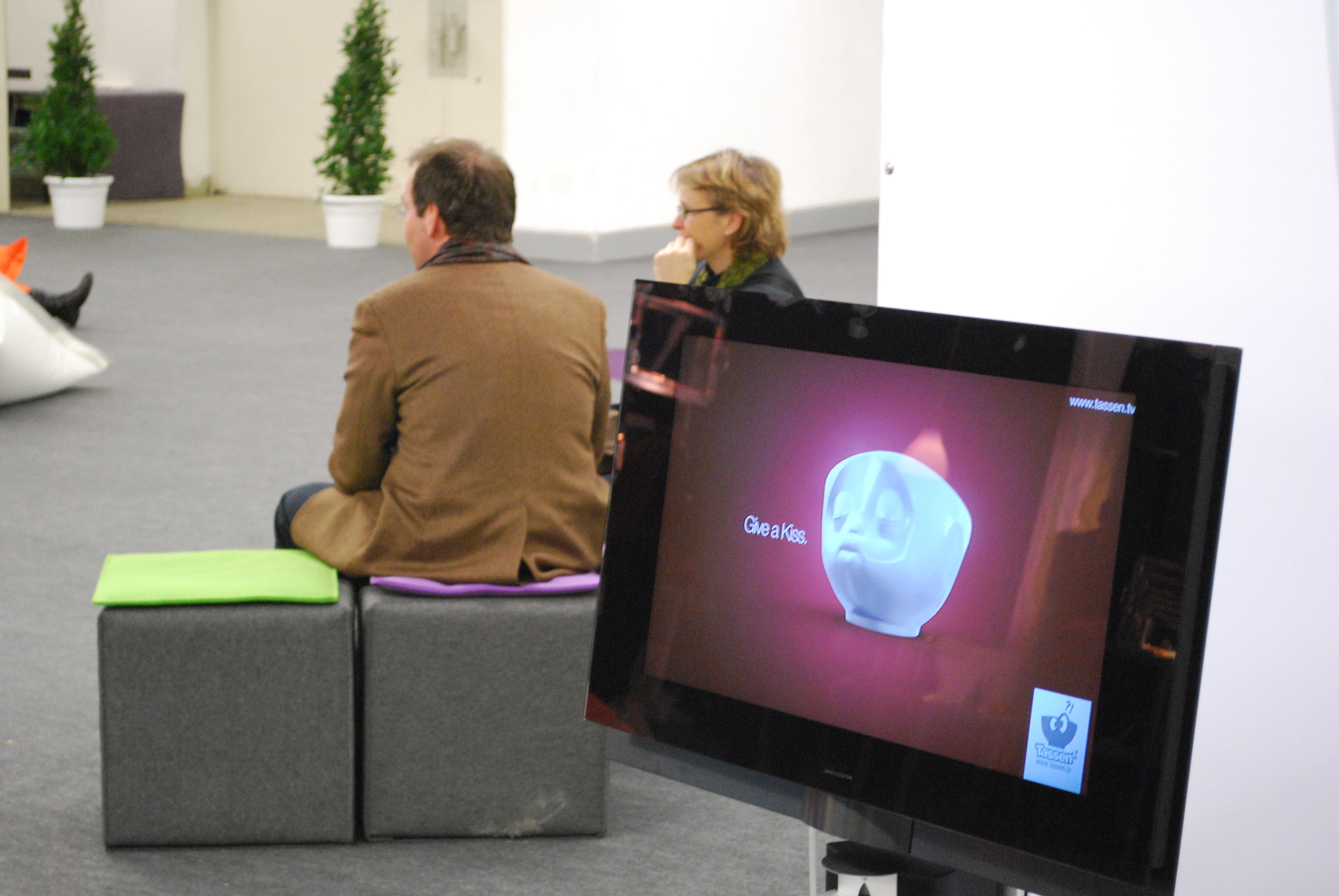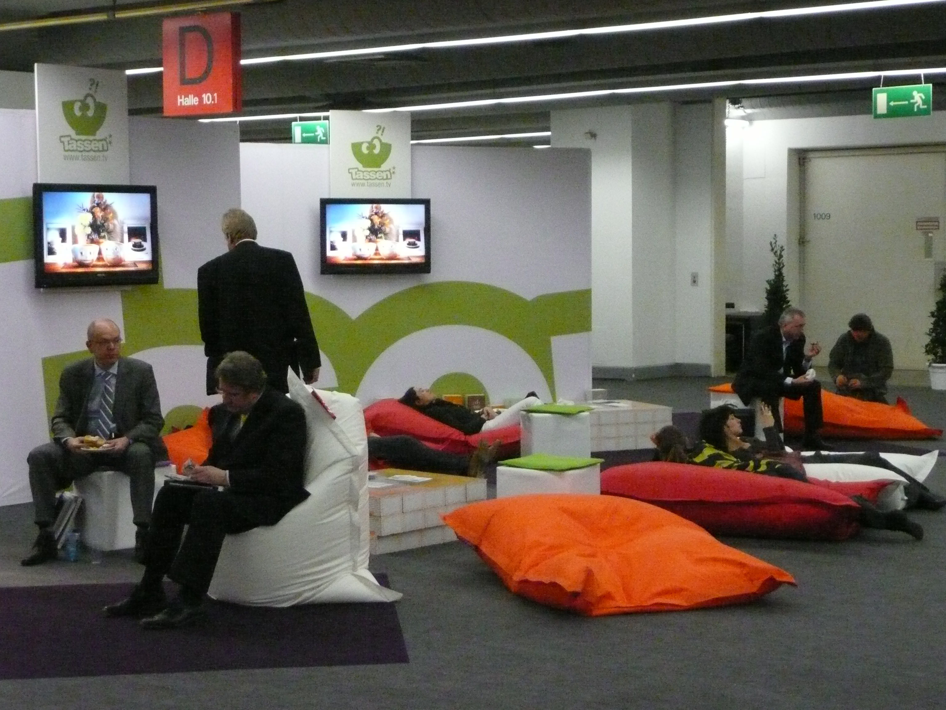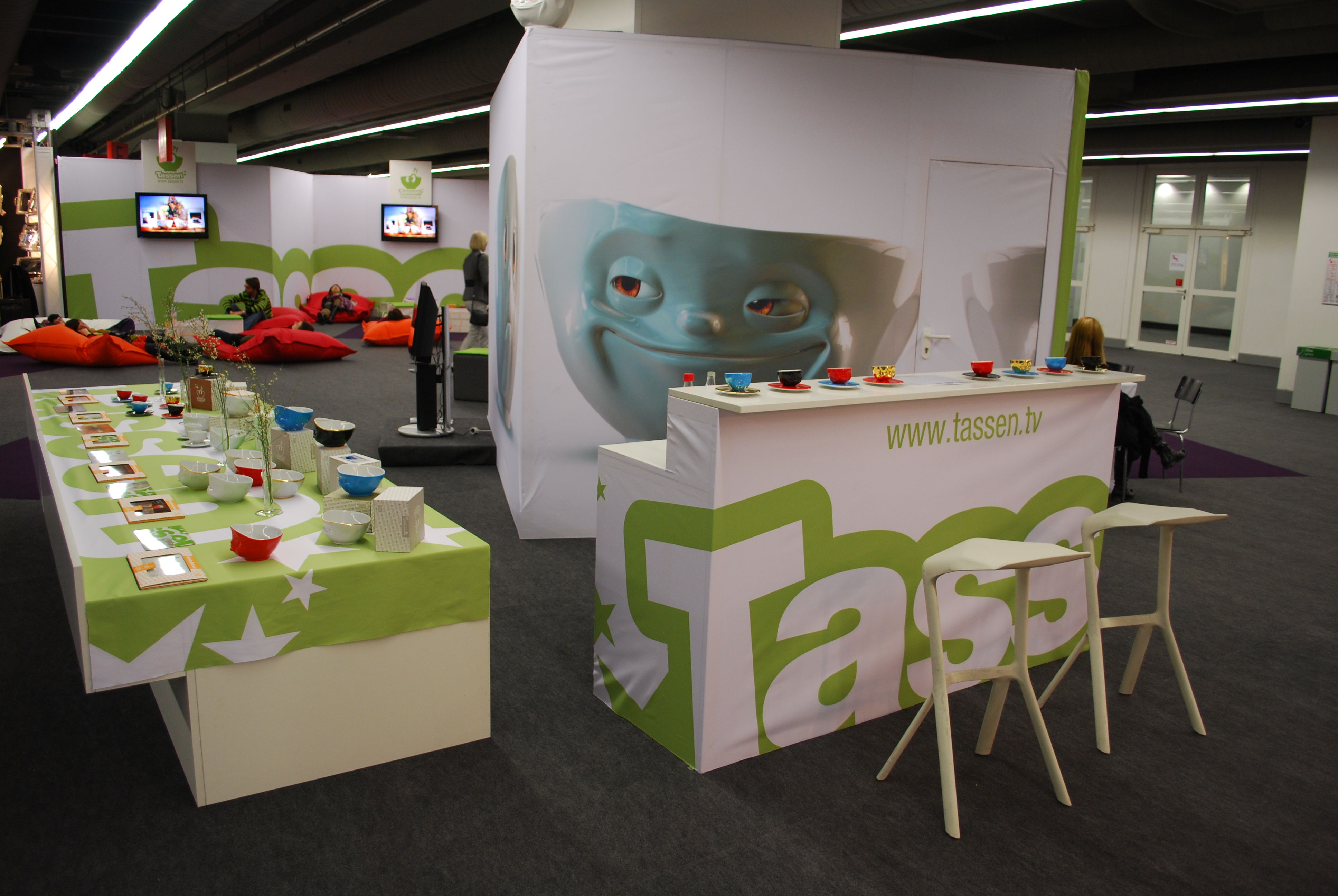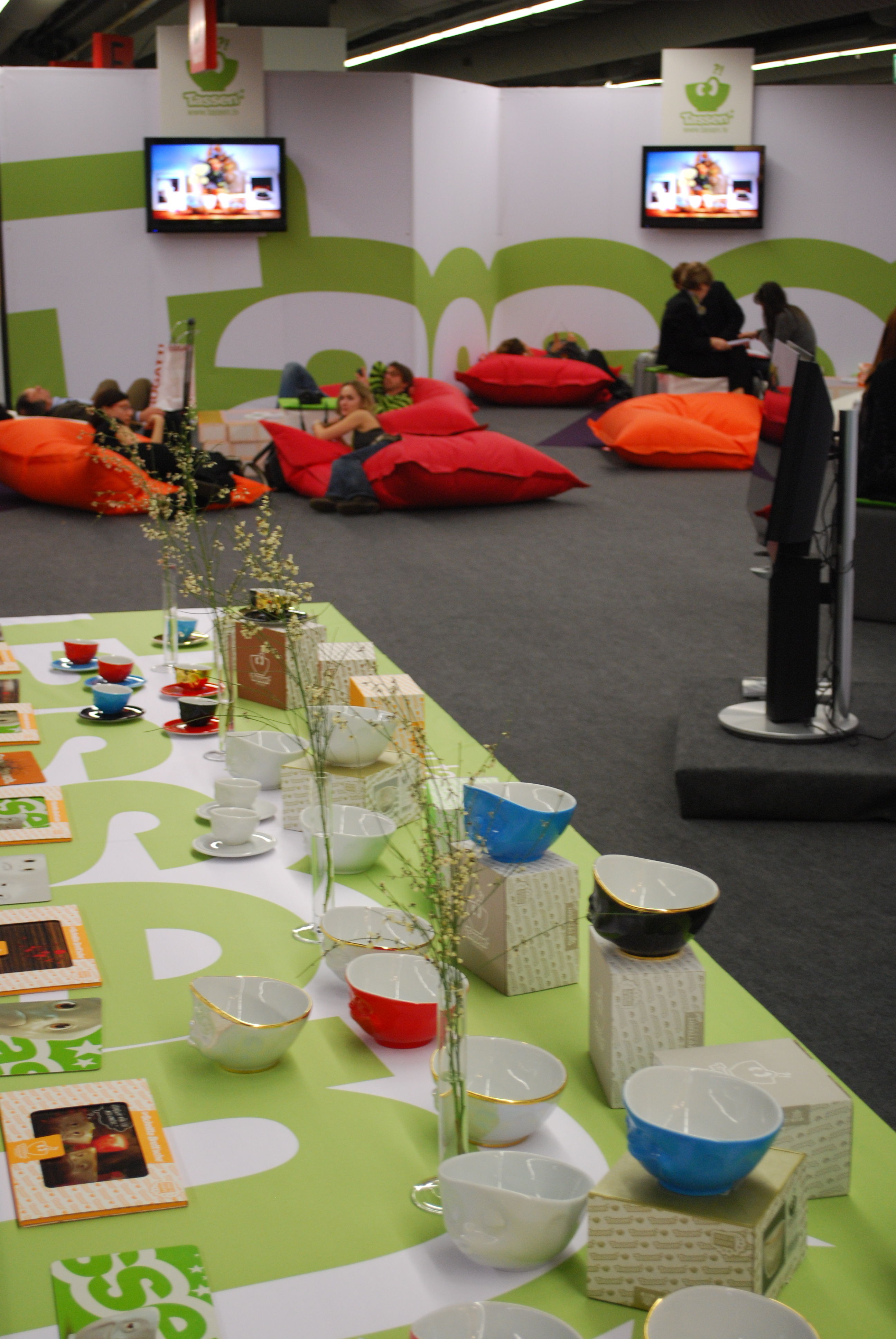 Just like previous trade show editions, this year's TASSEN booth was created with chilling out and relaxing from the stressful trade fair environment in mind. Since this year's theme for the show was "Ambiente goes City," many exhibitors cooperated with retailers around Frankfurt who offered to present their goods at their stores. This is how our TASSEN received the honor of showcasing our goods at the store of upscale audio specialists Bang & Olufsen at their Schillerstrasse location. And as it turned out, we also managed to score an extra TV screen for our booth. That's what we call a win/win situation!