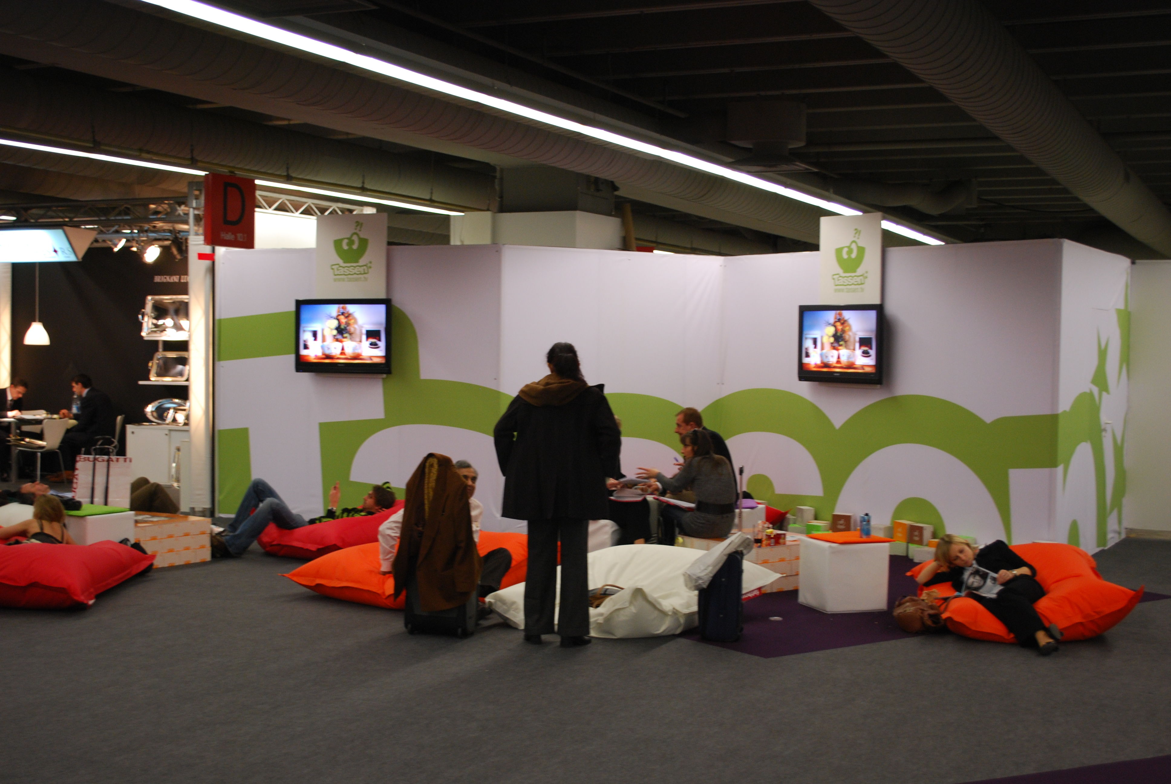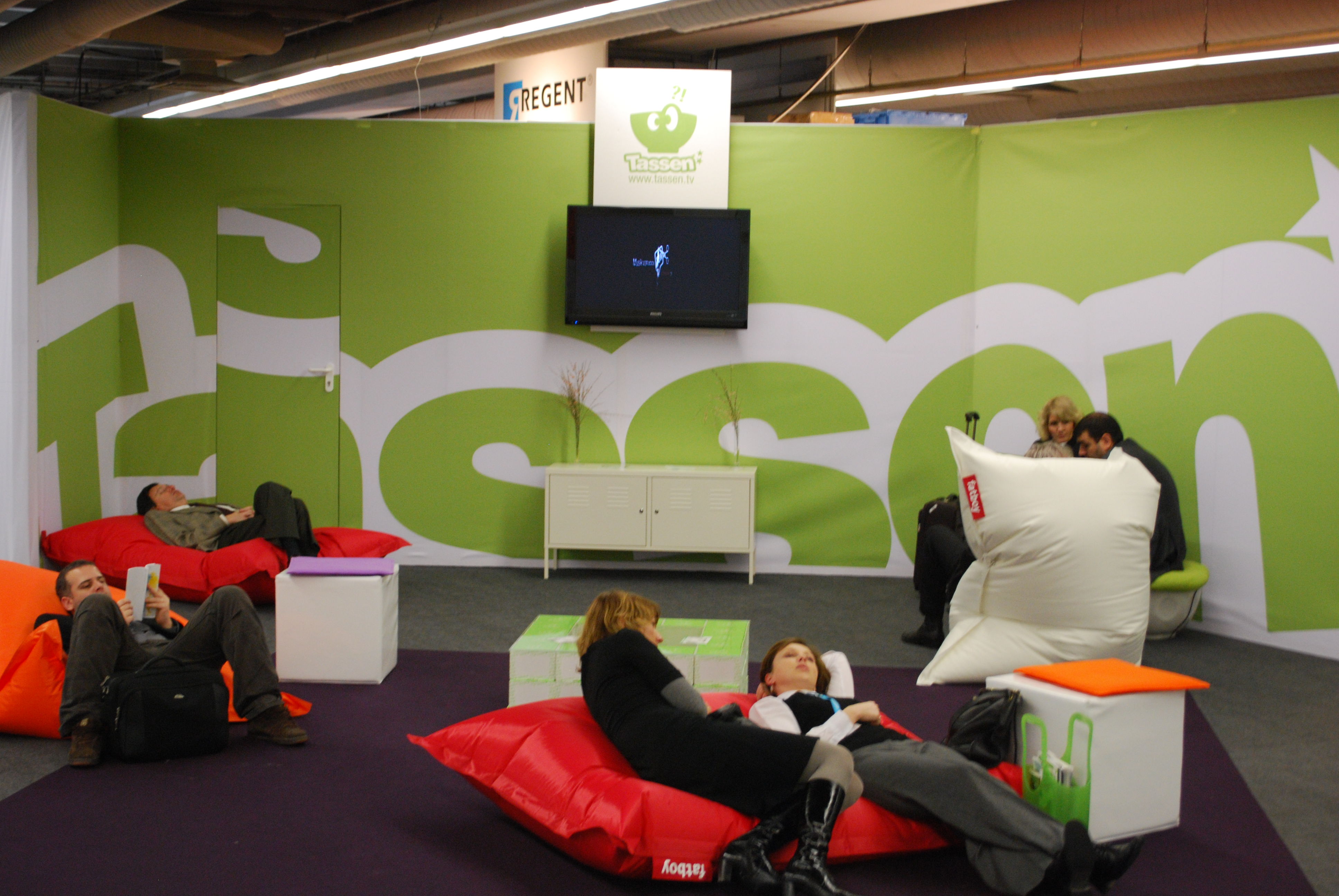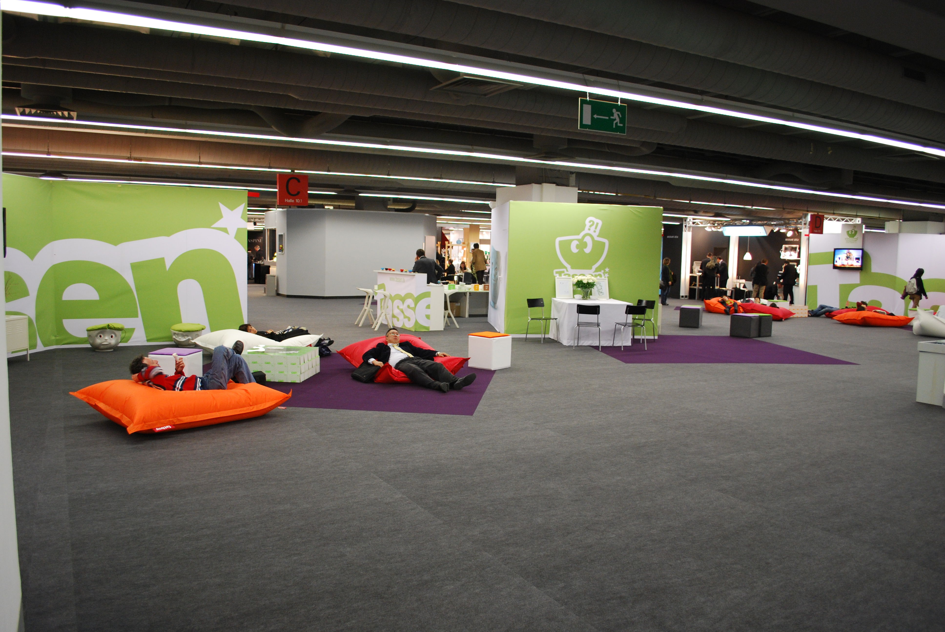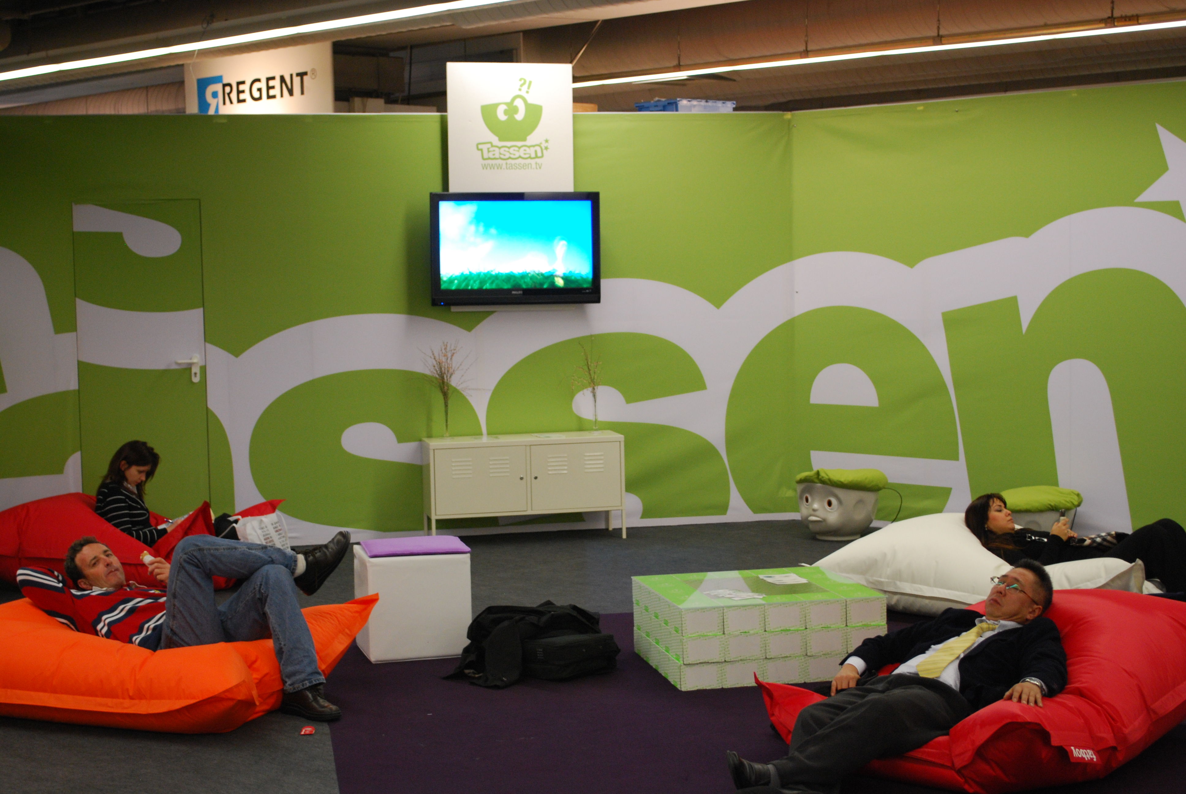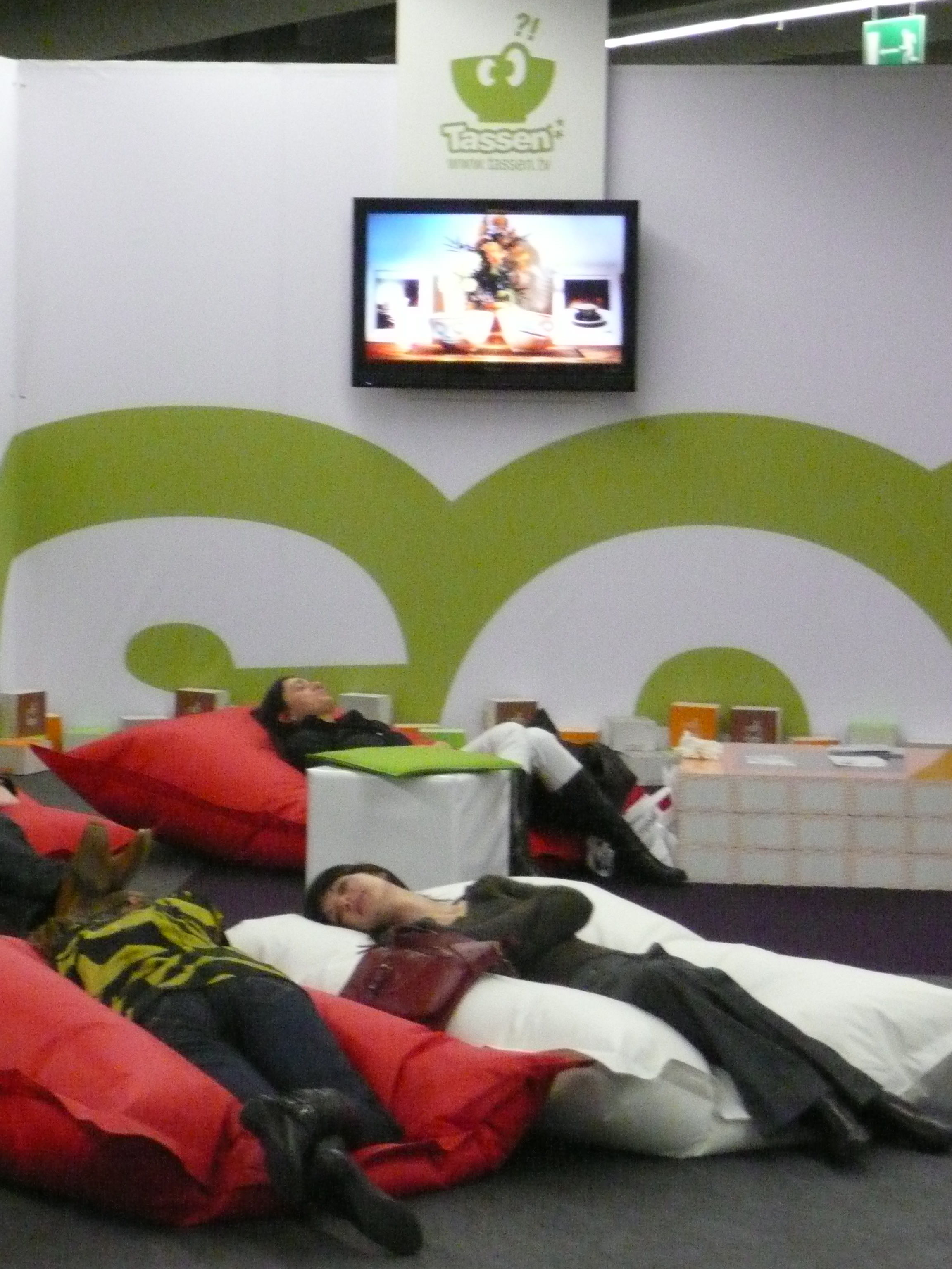 Just like previous trade show editions, this year's TASSEN booth was created with chilling out and relaxing from the stressful trade fair environment in mind. Since this year's theme for the show was "Ambiente goes City," many exhibitors cooperated with retailers around Frankfurt who offered to present their goods at their stores. This is how our TASSEN received the honor of showcasing our goods at the store of upscale audio specialists Bang & Olufsen at their Schillerstrasse location. And as it turned out, we also managed to score an extra TV screen for our booth. That's what we call a win/win situation!