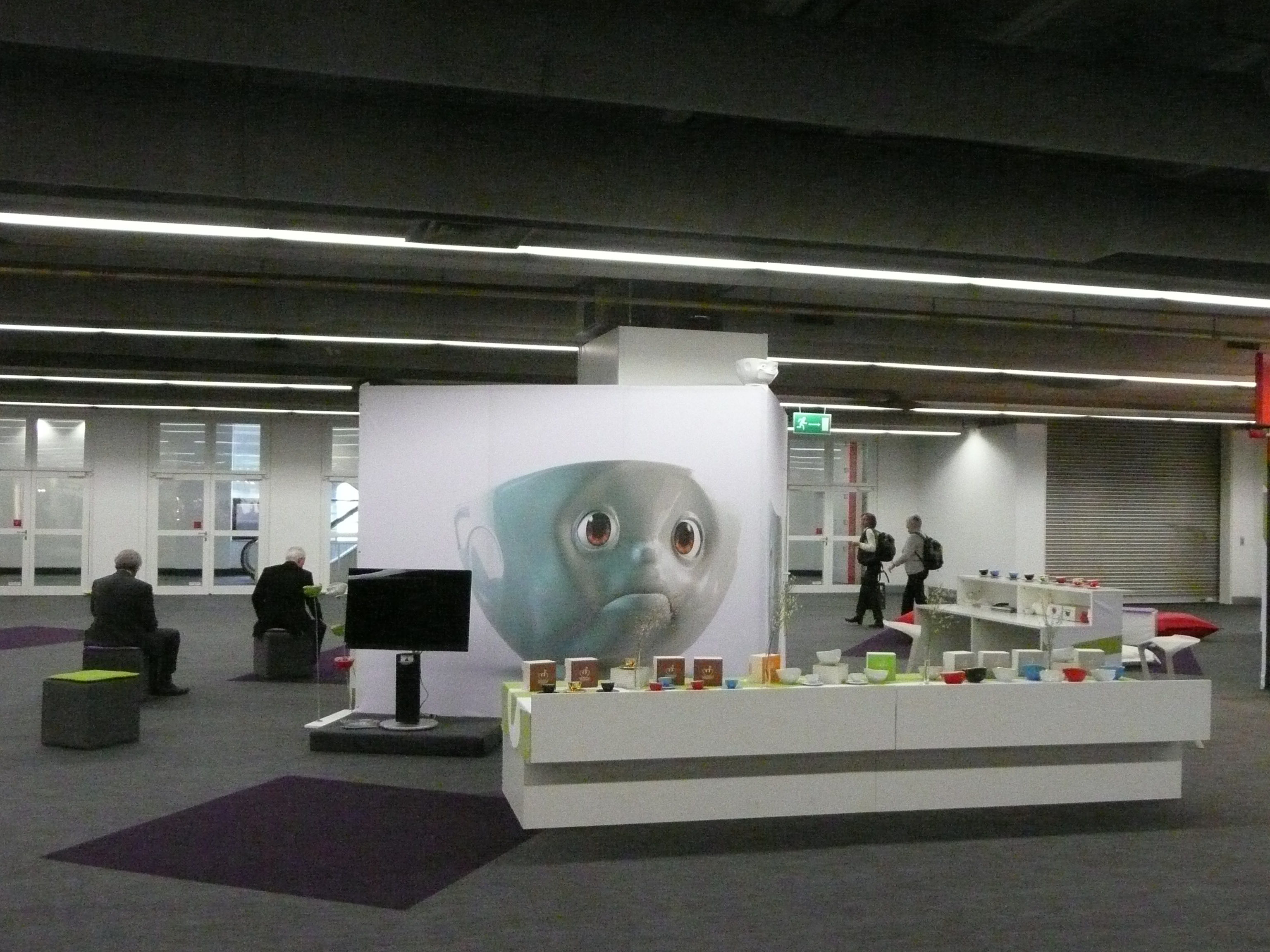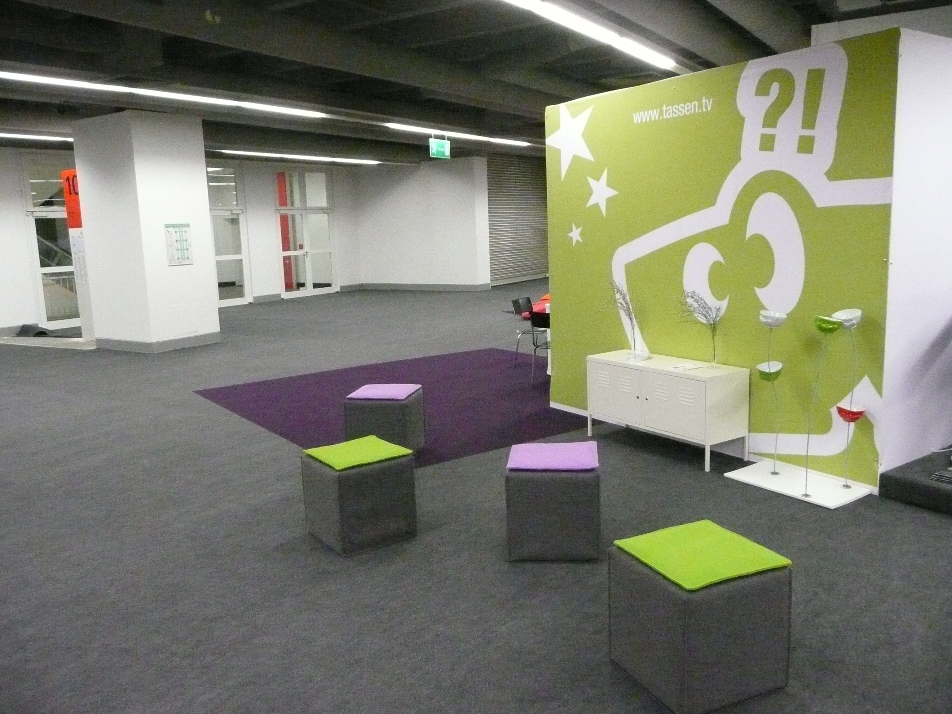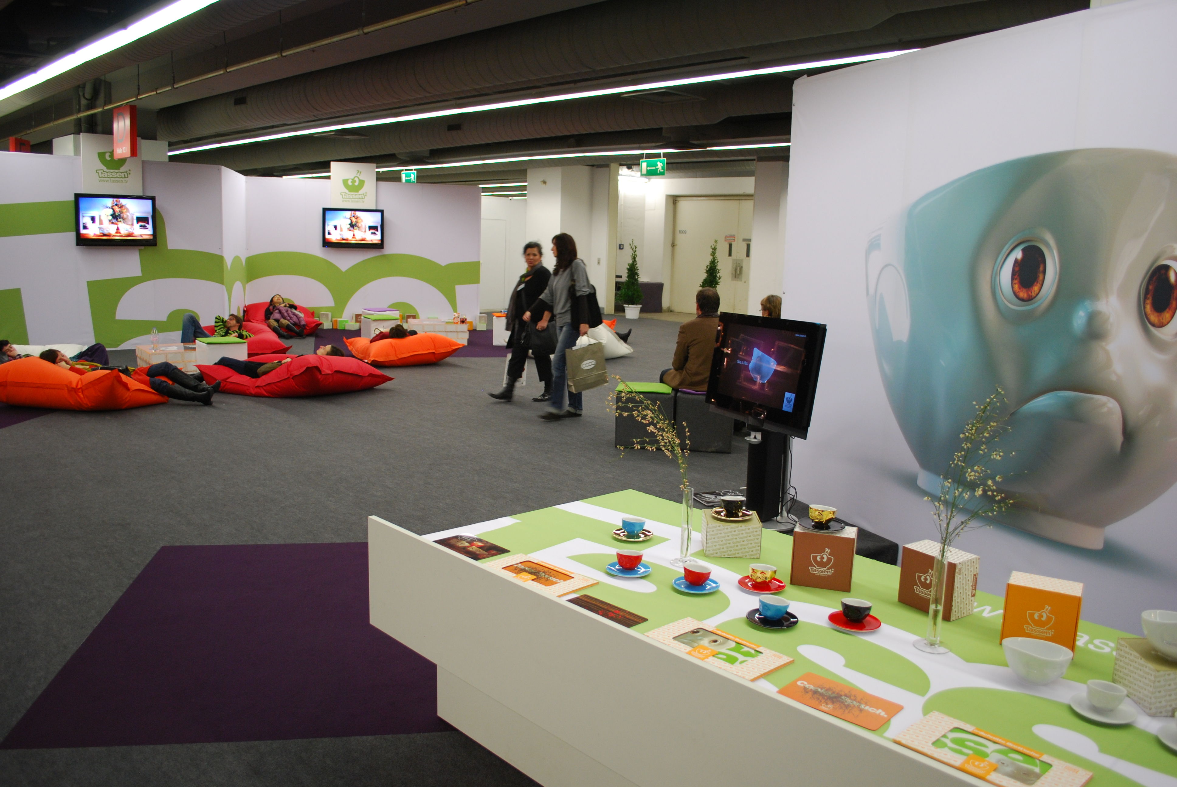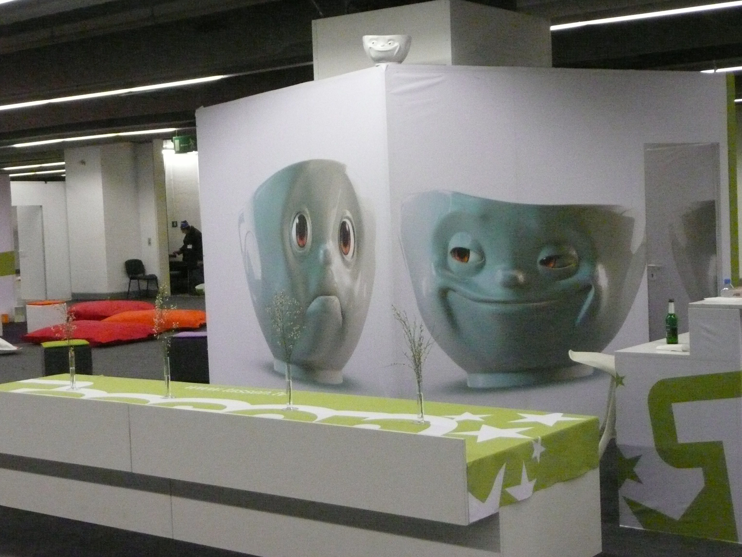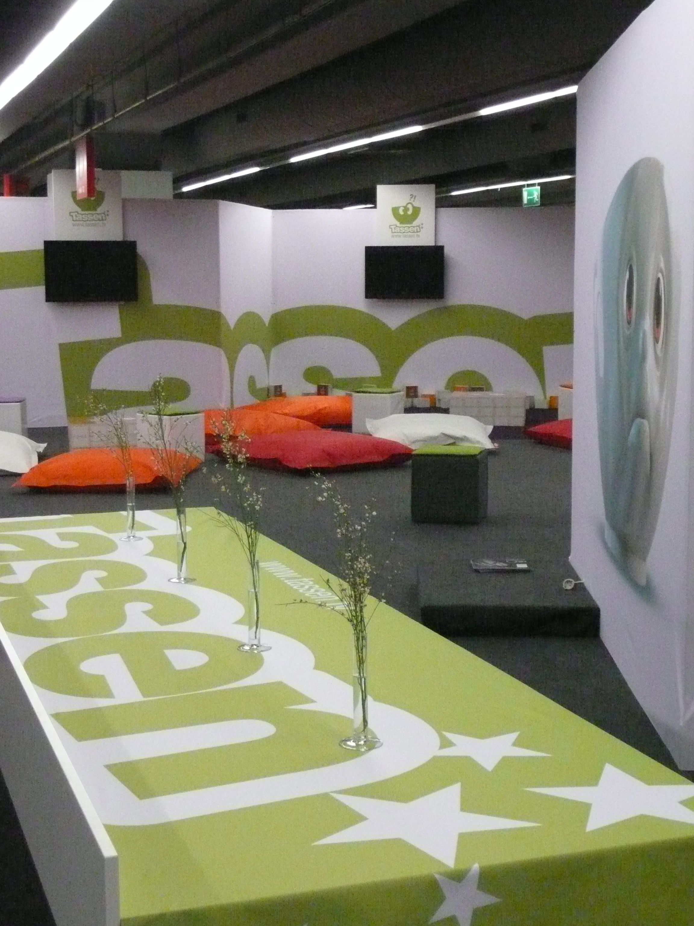 Just like previous trade show editions, this year's TASSEN booth was created with chilling out and relaxing from the stressful trade fair environment in mind. Since this year's theme for the show was "Ambiente goes City," many exhibitors cooperated with retailers around Frankfurt who offered to present their goods at their stores. This is how our TASSEN received the honor of showcasing our goods at the store of upscale audio specialists Bang & Olufsen at their Schillerstrasse location. And as it turned out, we also managed to score an extra TV screen for our booth. That's what we call a win/win situation!