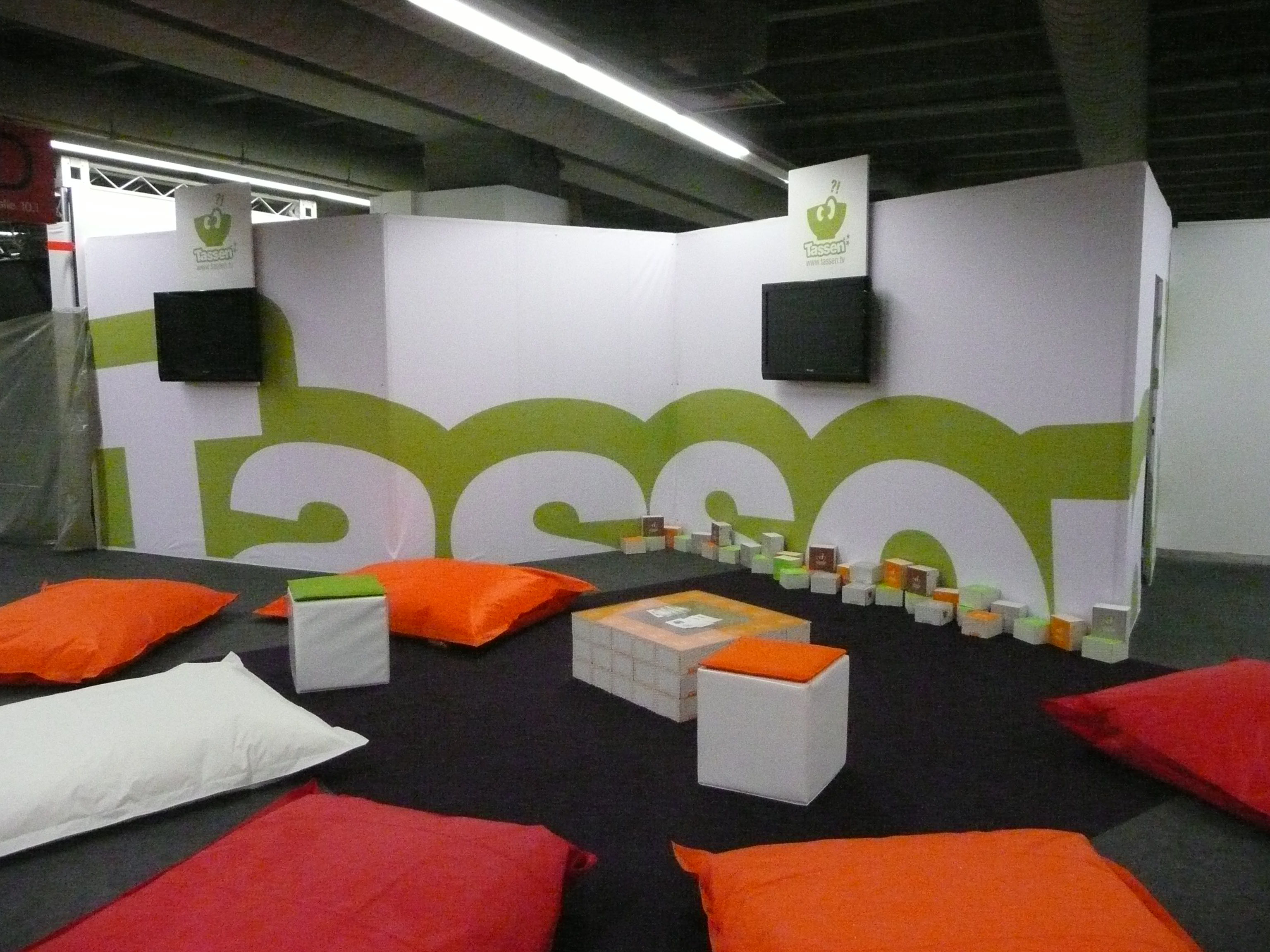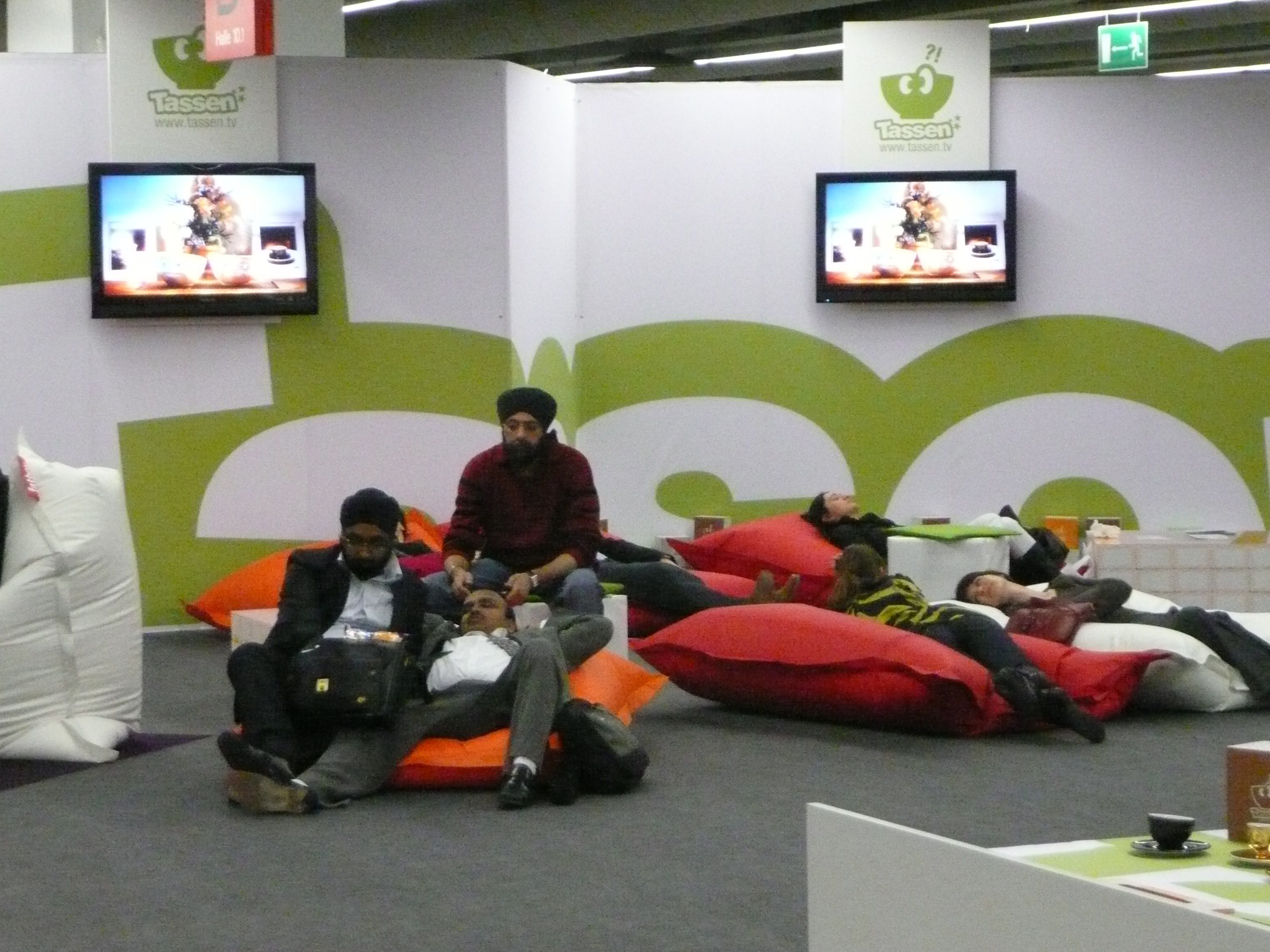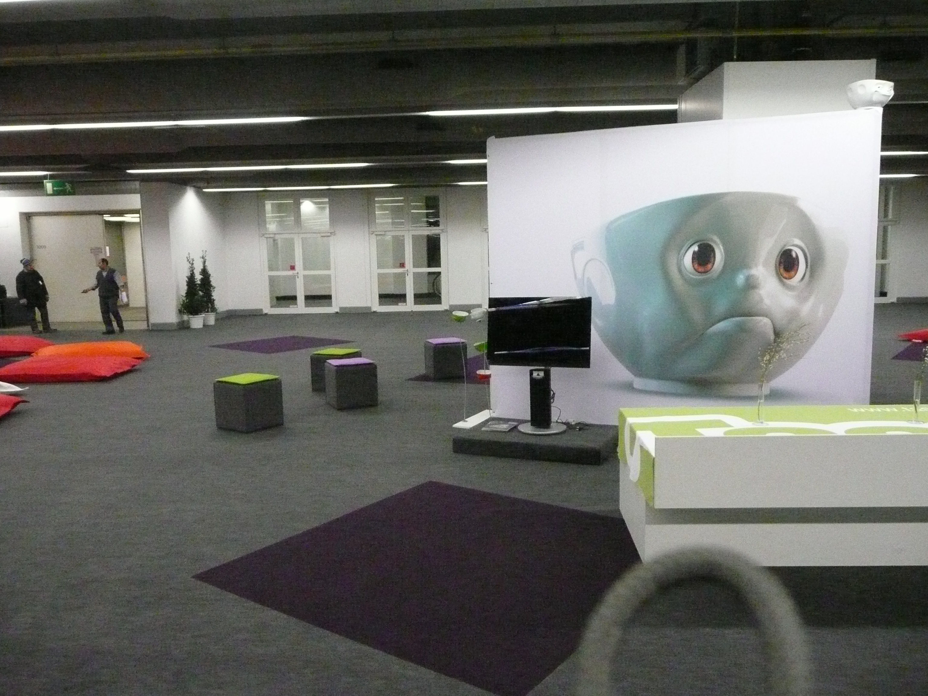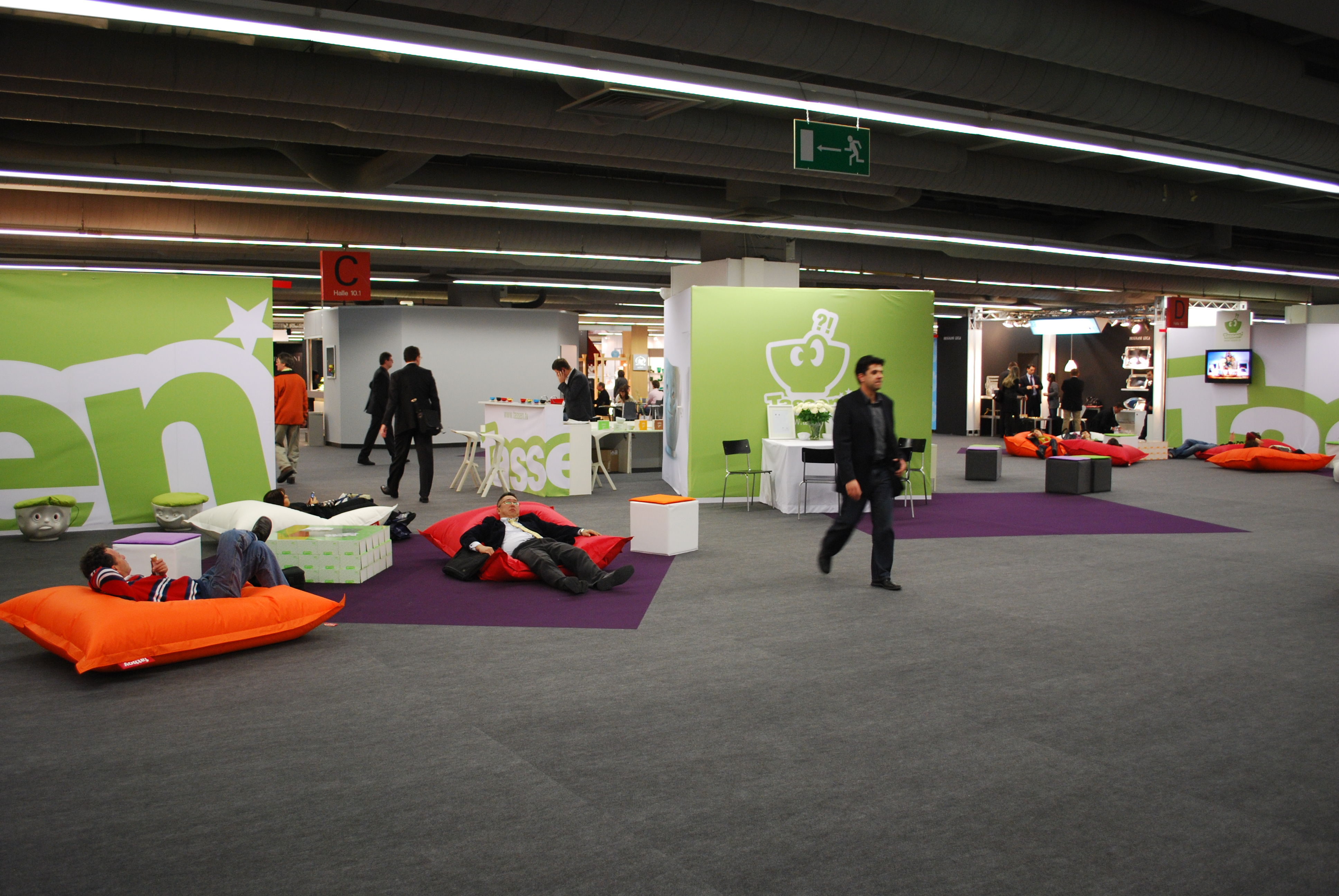 Just like previous trade show editions, this year's TASSEN booth was created with chilling out and relaxing from the stressful trade fair environment in mind. Since this year's theme for the show was "Ambiente goes City," many exhibitors cooperated with retailers around Frankfurt who offered to present their goods at their stores. This is how our TASSEN received the honor of showcasing our goods at the store of upscale audio specialists Bang & Olufsen at their Schillerstrasse location. And as it turned out, we also managed to score an extra TV screen for our booth. That's what we call a win/win situation!