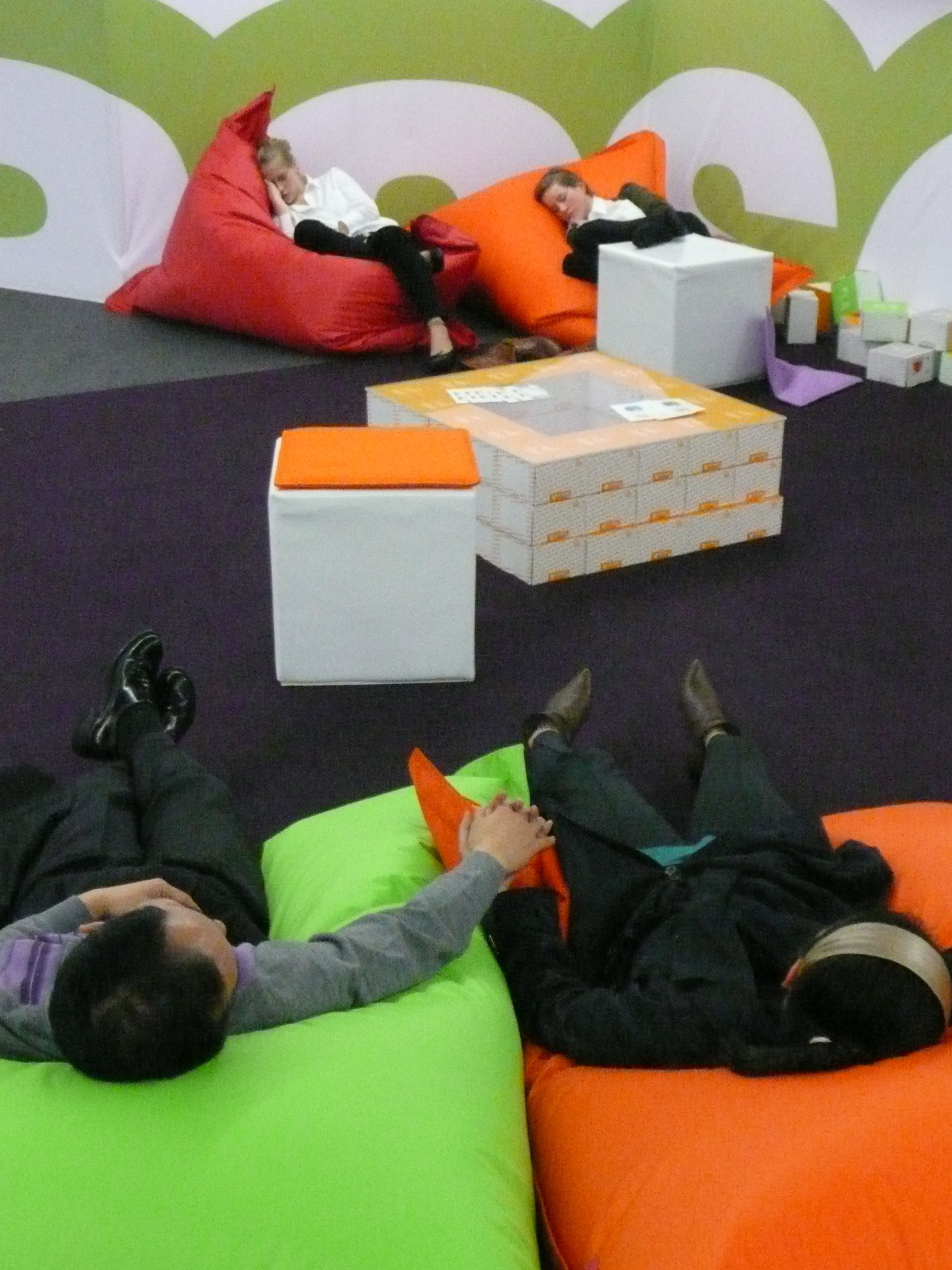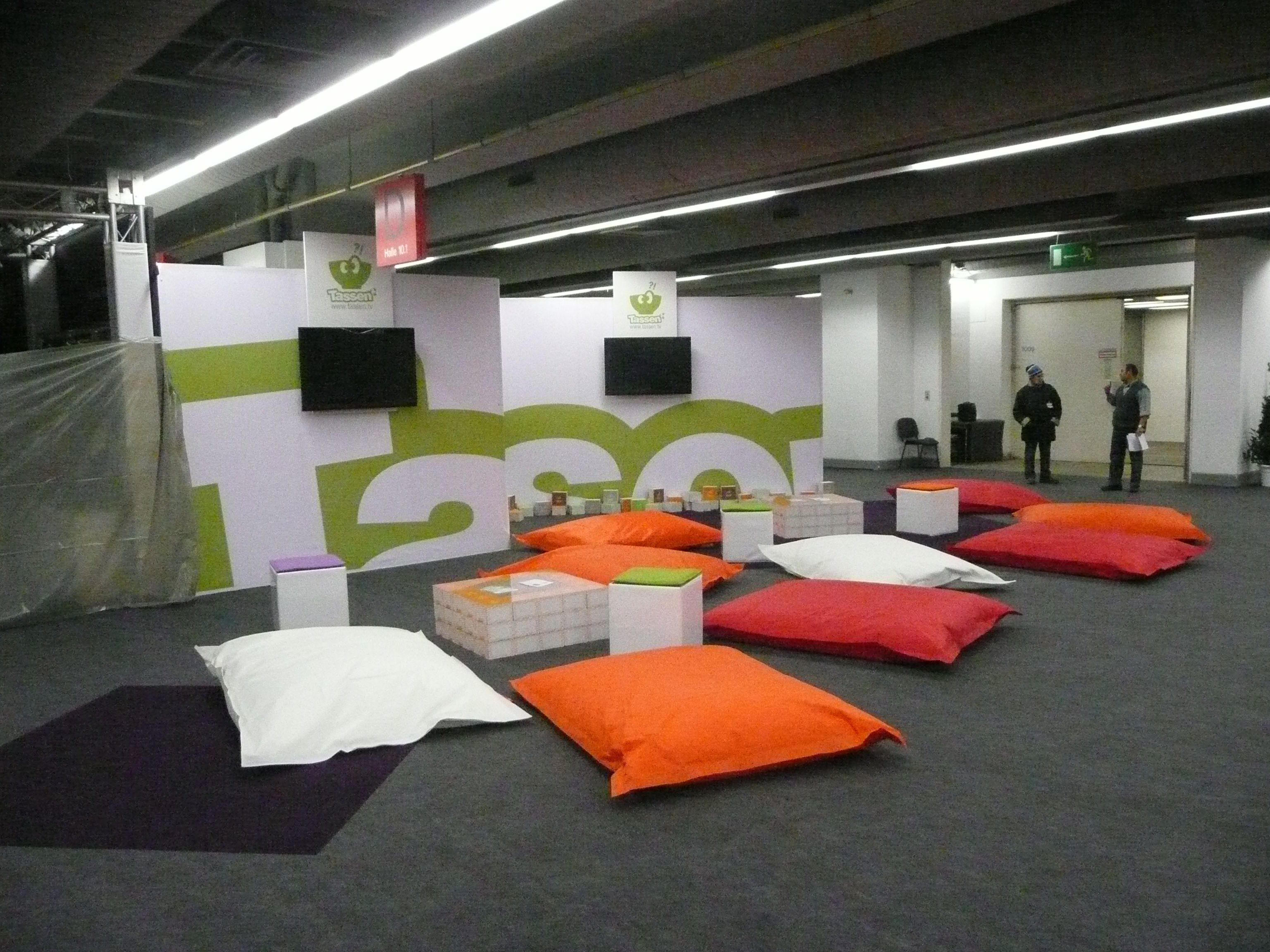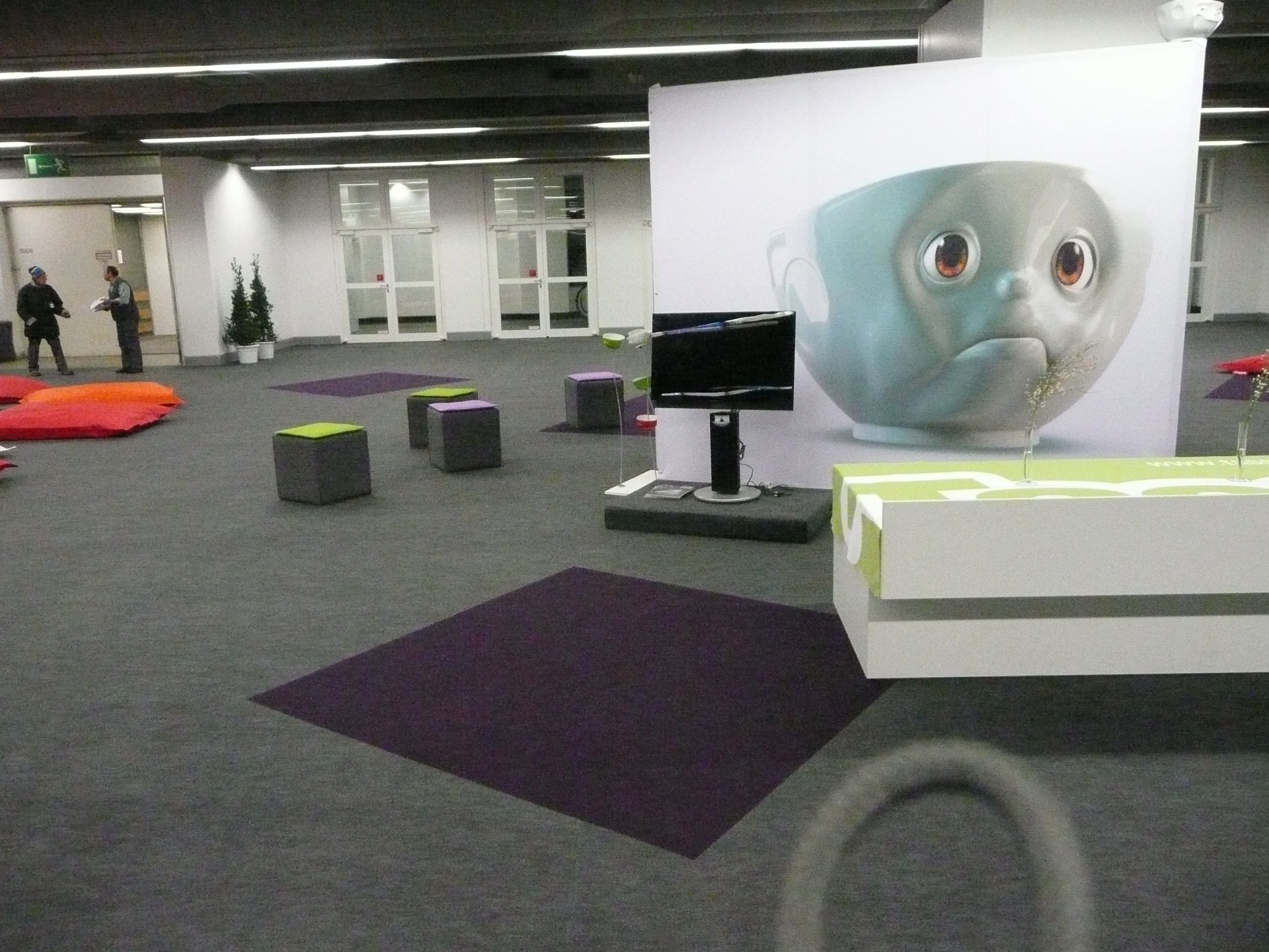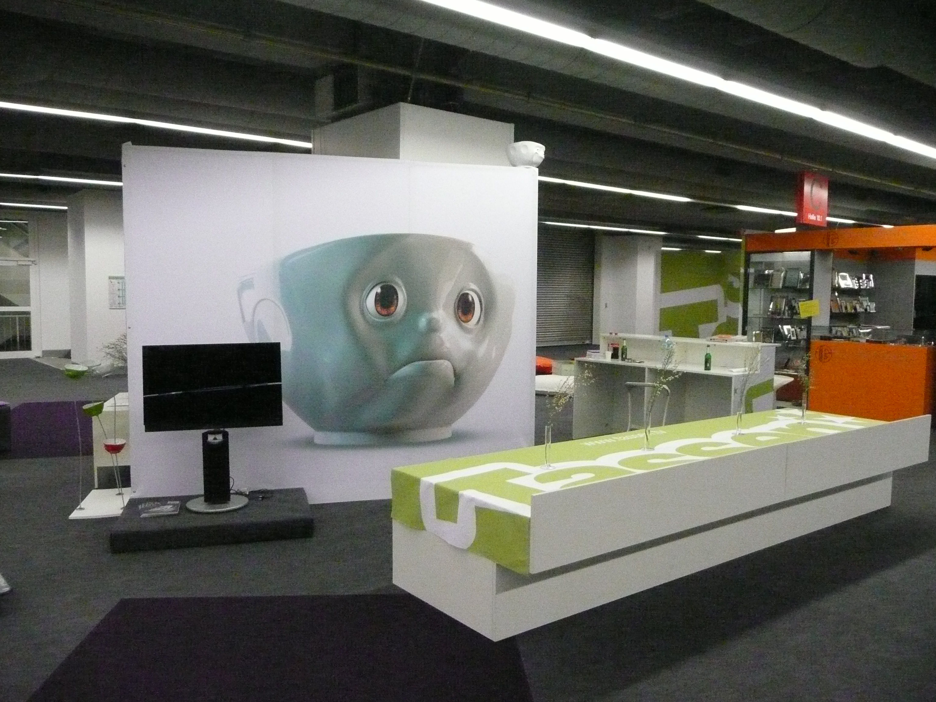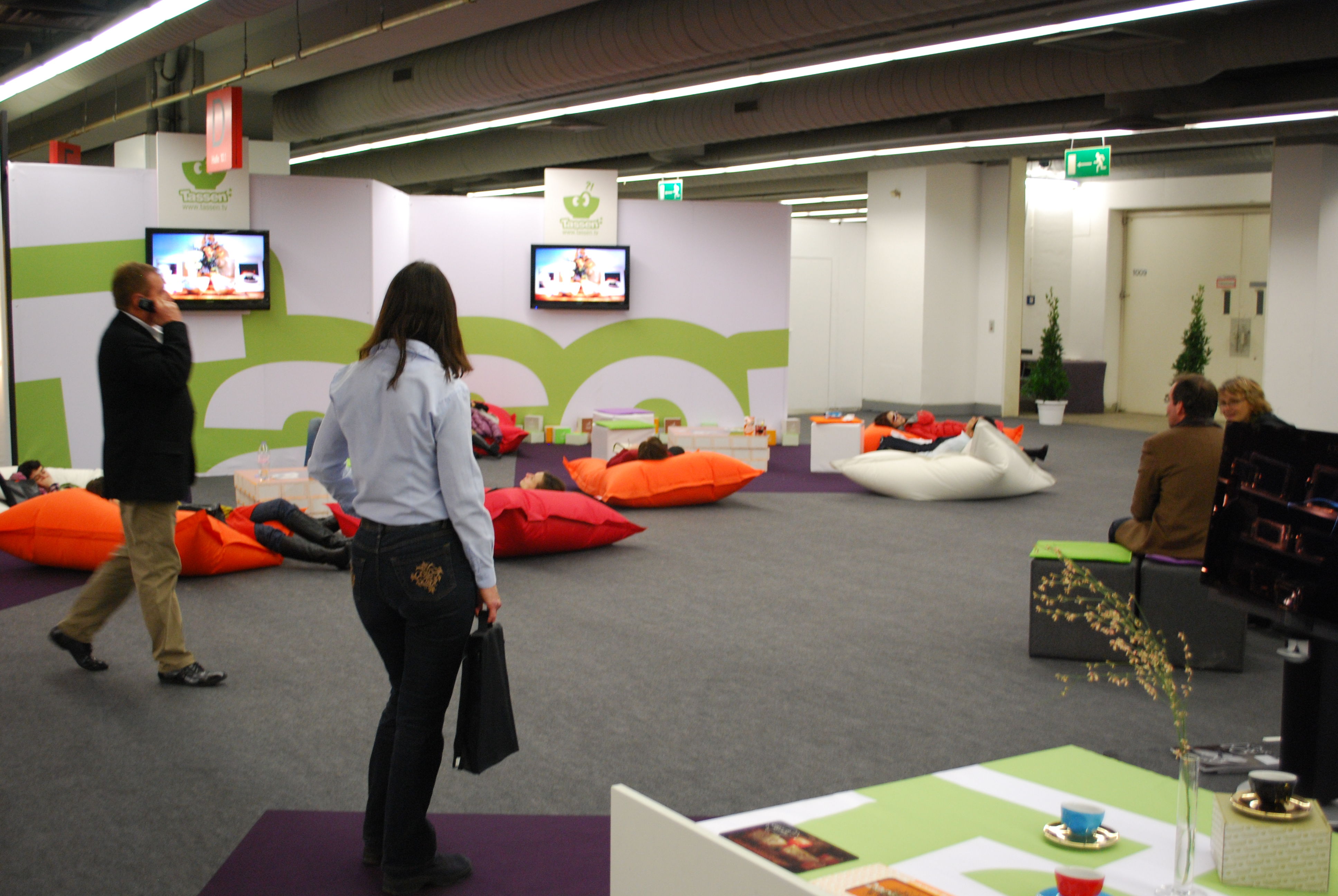 Just like previous trade show editions, this year's TASSEN booth was created with chilling out and relaxing from the stressful trade fair environment in mind. Since this year's theme for the show was "Ambiente goes City," many exhibitors cooperated with retailers around Frankfurt who offered to present their goods at their stores. This is how our TASSEN received the honor of showcasing our goods at the store of upscale audio specialists Bang & Olufsen at their Schillerstrasse location. And as it turned out, we also managed to score an extra TV screen for our booth. That's what we call a win/win situation!