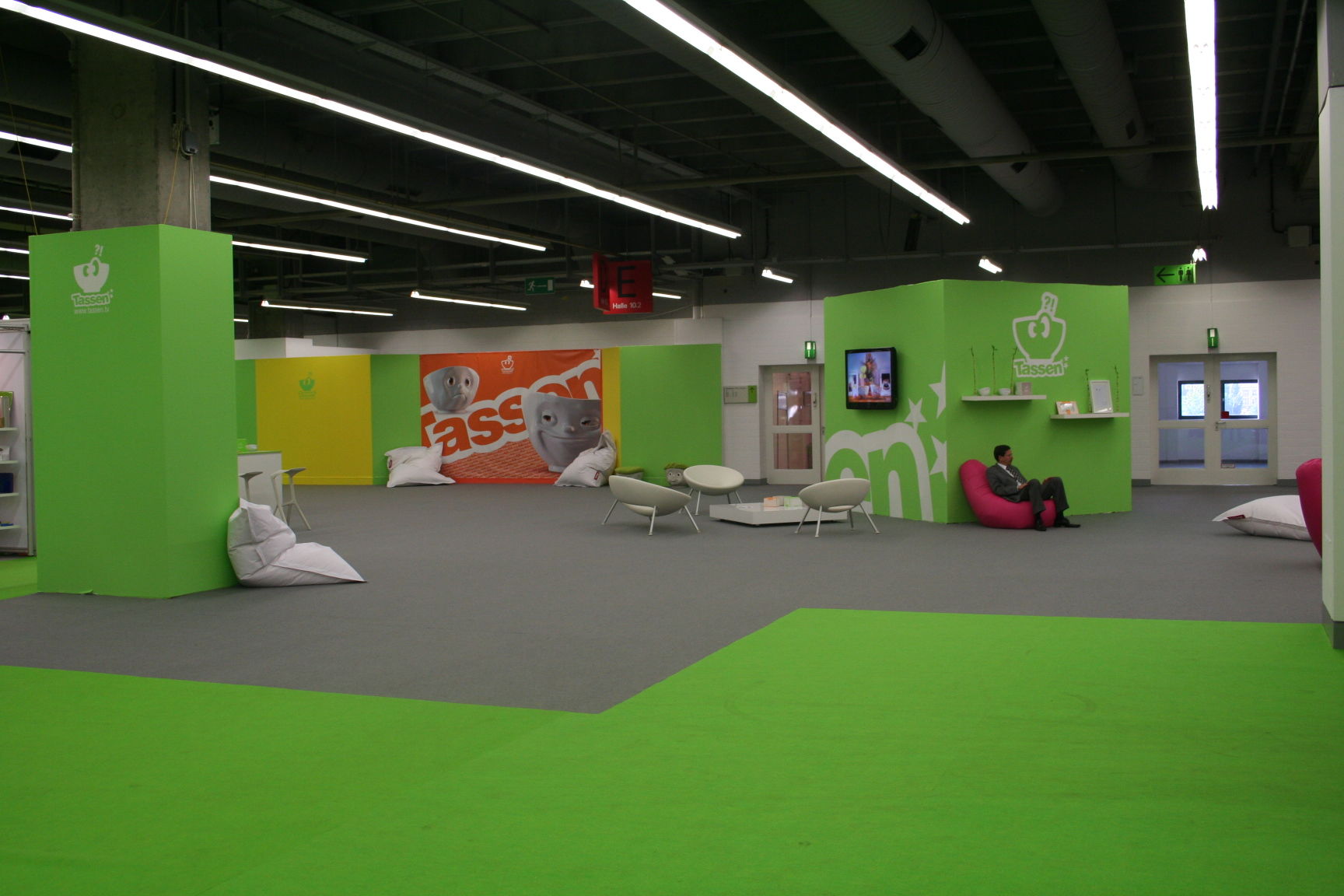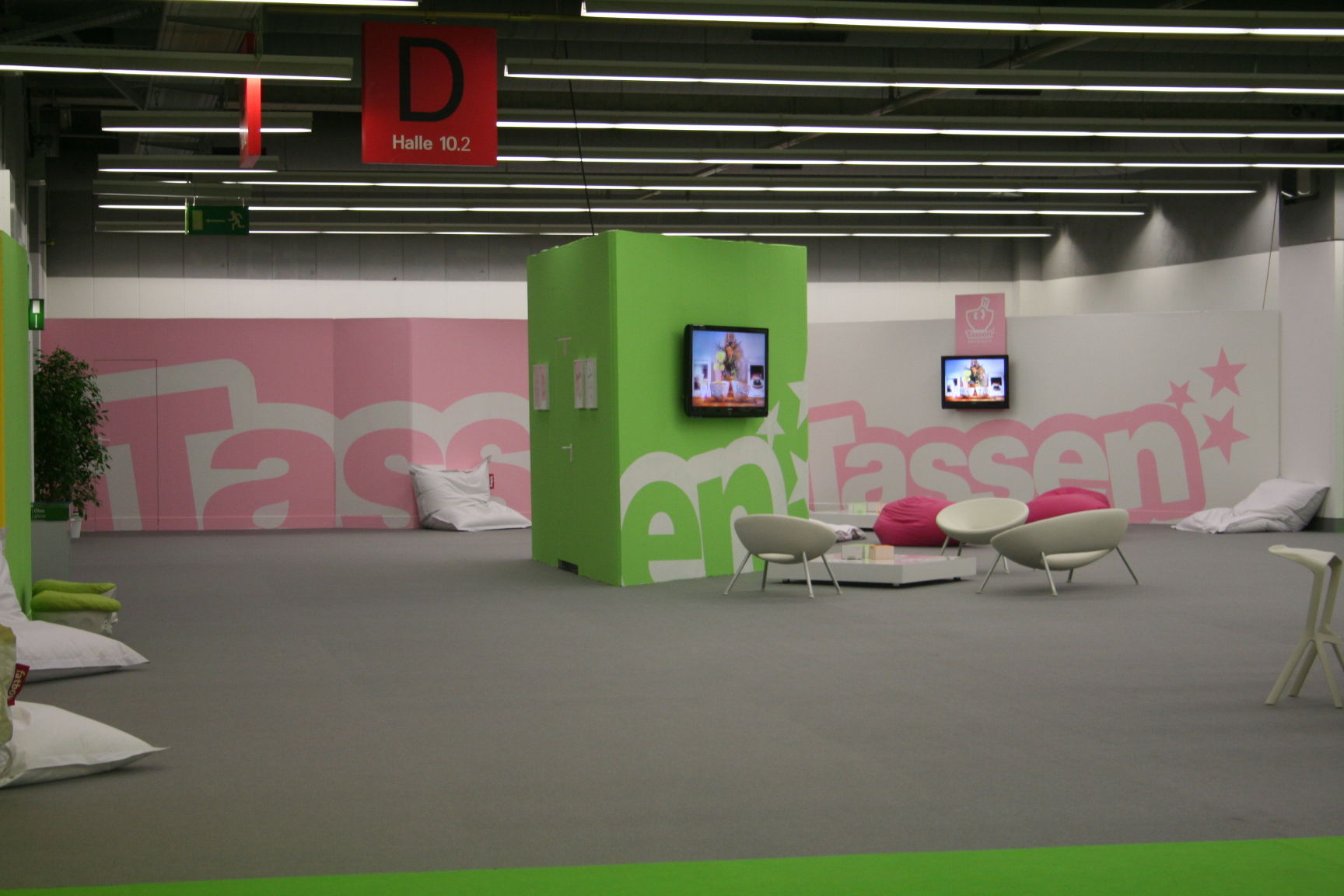 Talk about doing it big. At the 2008 edition of Decorate Life tradeshow (today called "Tendence"), we continued our special cooperation with the Frankfurt Fair Centre and designed a large chill out area with special TASSEN animated movies on display. The real kicker was that we had 300 sq. meters to play with this year – enough room for some major chilling out.