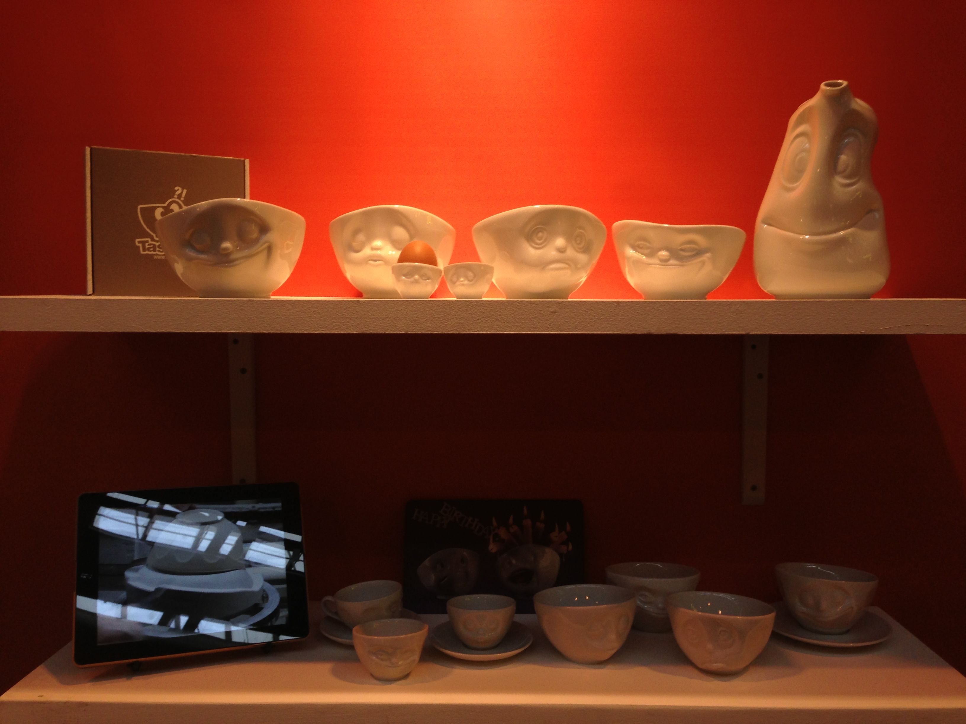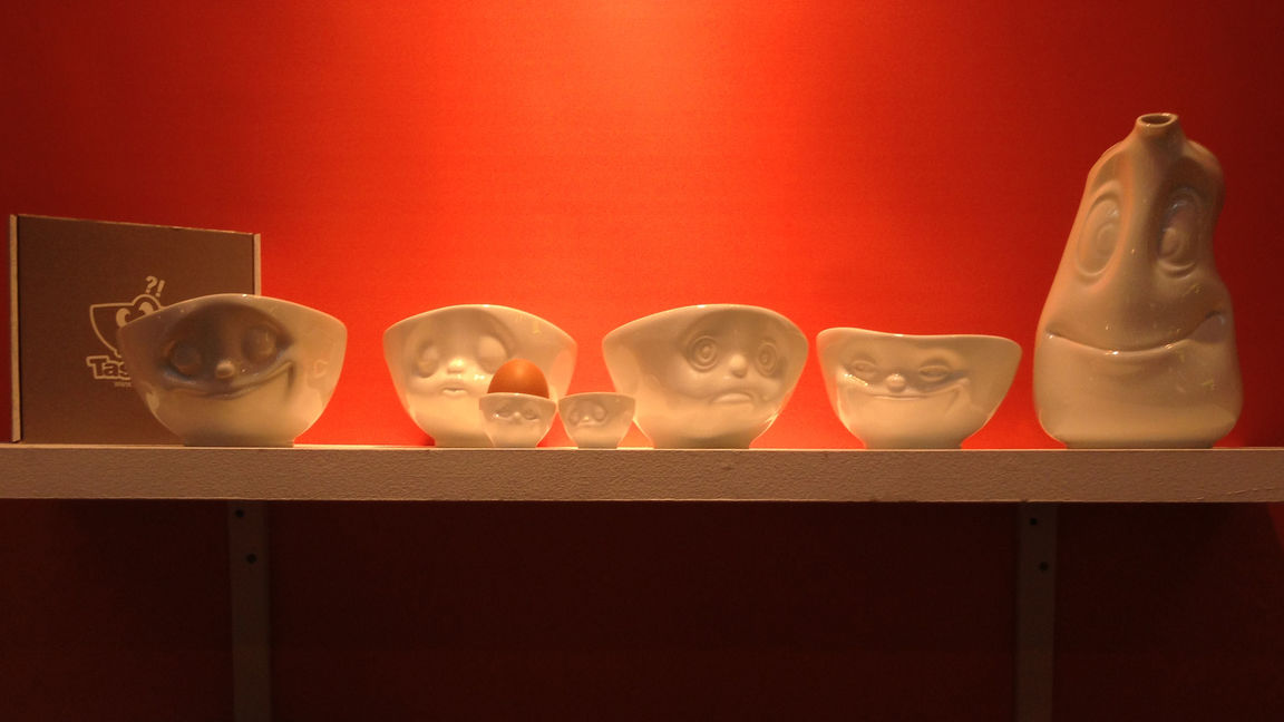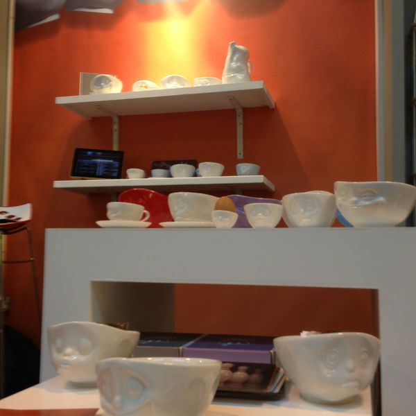 For this special occasion, we came prepared by bringing our latest novelty, the "Oh Please!" coffee cups. But then again, pretty much all our products were novelties for customers in the United Kingdom. And it was a special treat to see the spontaneous reactions of people seeing our grinning, kissing or sulking little friends for their first time, and watch their faces instantly lighting up with smiles of appreciation.