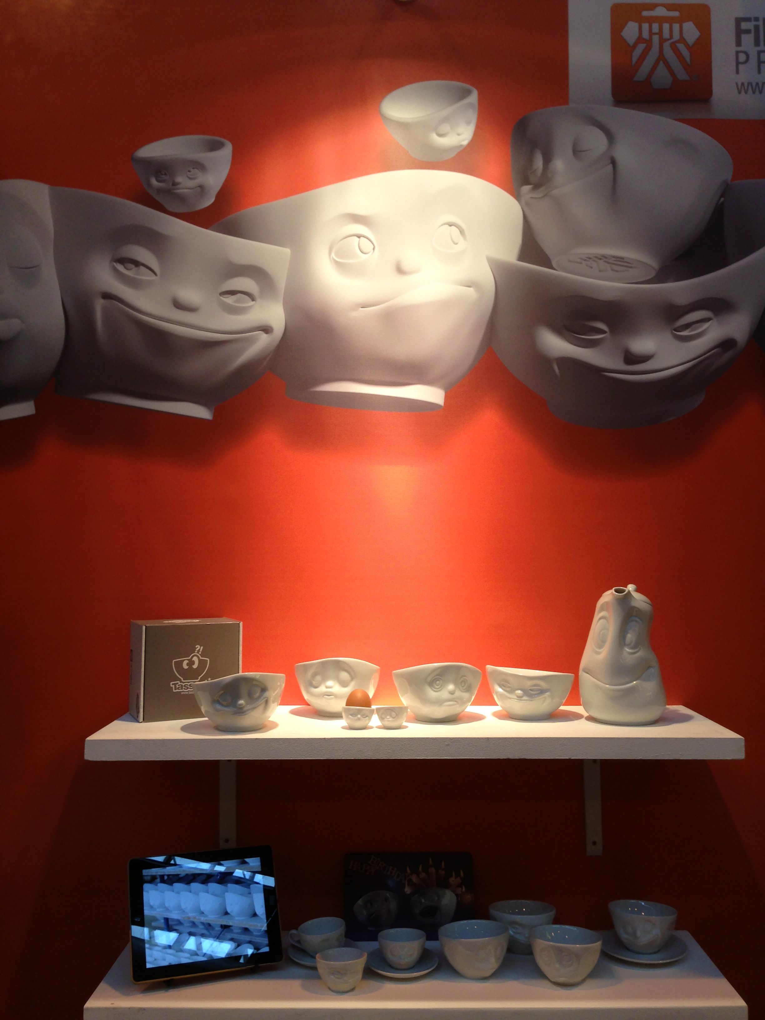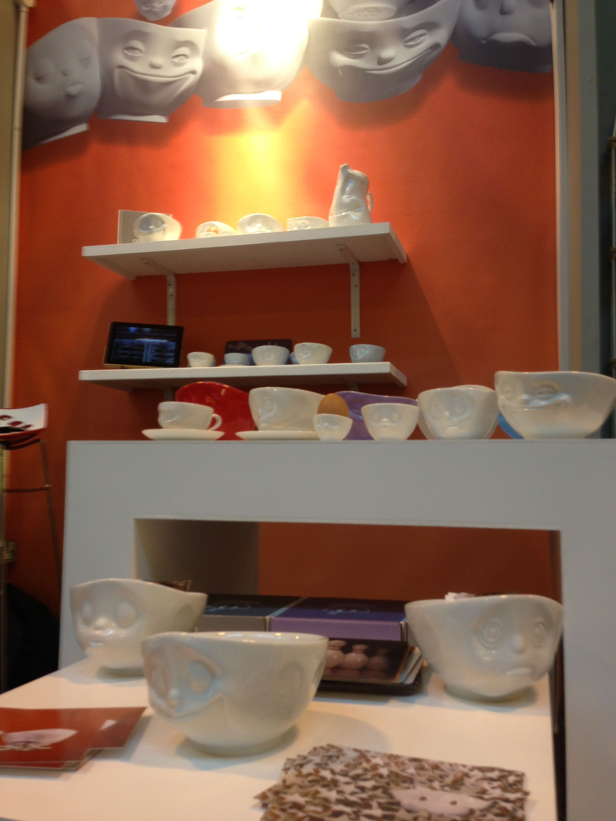 For this special occasion, we came prepared by bringing our latest novelty, the "Oh Please!" coffee cups. But then again, pretty much all our products were novelties for customers in the United Kingdom. And it was a special treat to see the spontaneous reactions of people seeing our grinning, kissing or sulking little friends for their first time, and watch their faces instantly lighting up with smiles of appreciation.